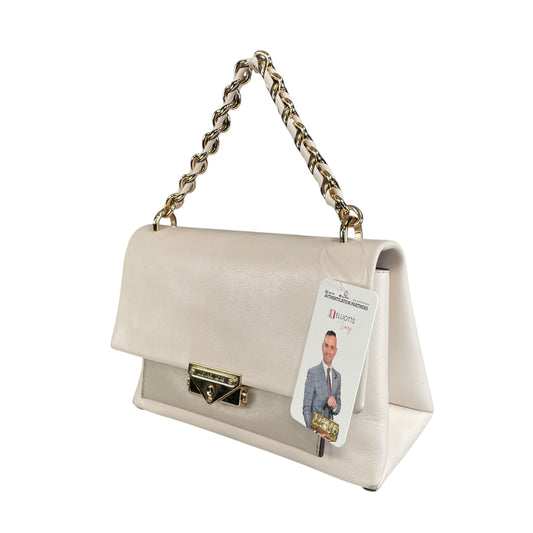 Michael Kors Cece Flap Chain Bag Cream Leather GHW 2-Way Top Handle