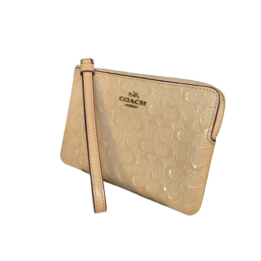 Coach Nude Patent Signature C Wristlet Gold Hardware Zip Pouch Beige Wallet Clutch