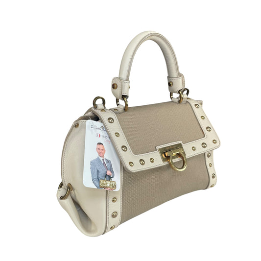 Salvatore Ferragamo Sofia Small Studded Canvas Leather Top Handle Brushed HW Bag