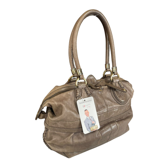 TOD’s Taupe Soft Calfskin Leather Satchel D-Bag Style Double Handle Bauletto