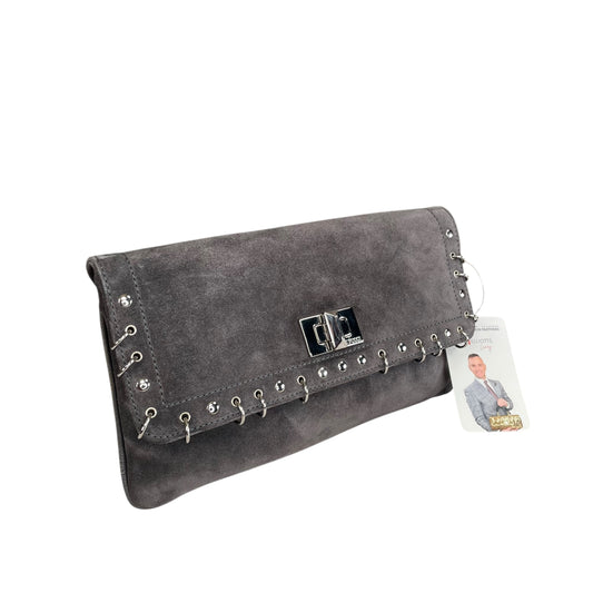 Emilio Pucci Studded Pierced Suede Clutch Gray Silver Hardware Turn Lock Clutch
