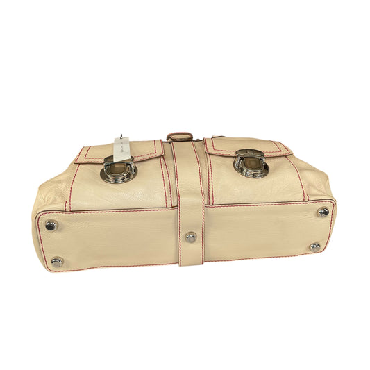 Marc Jacobs Venetia Cream Leather Tote Red Stitching Silver HW Large Satchel