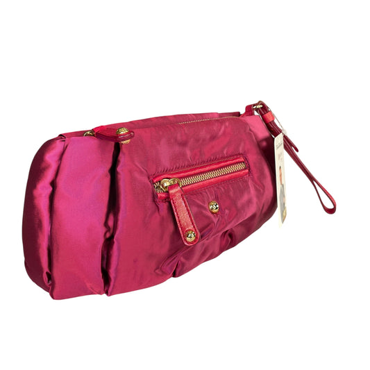 Tod’s Pashmy Magenta Satin Nylon Wristlet Clutch Gold Hardware Zip Pouch Italy