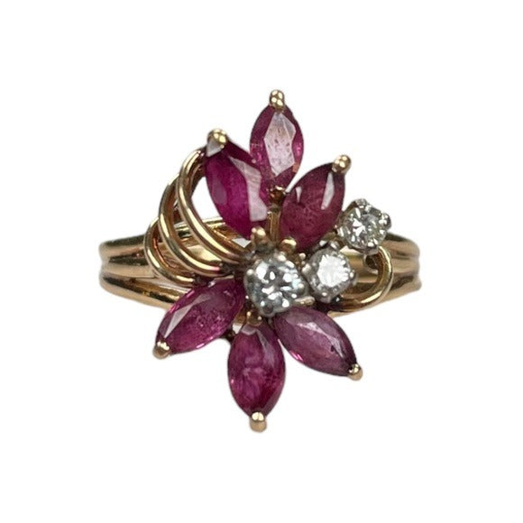 Ruby & Round Diamond Spiral Pinky Ring 10K Marquee Authentic Size 5.25