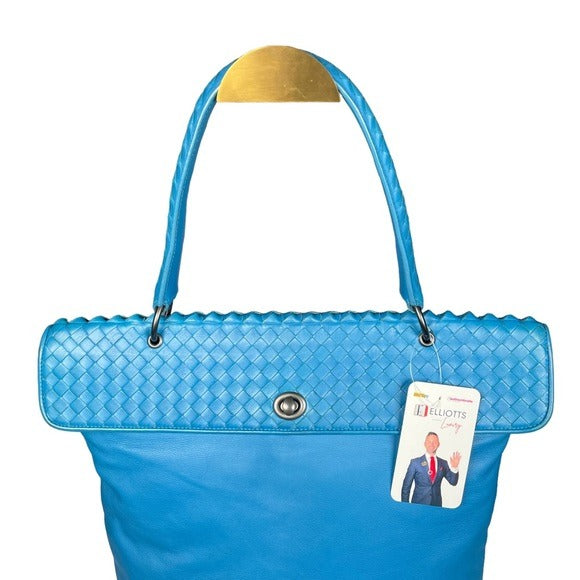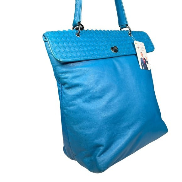 Bottega Veneta Cobalt Blue Woven Flappy Tote Bag Travel Business Purse Stachel