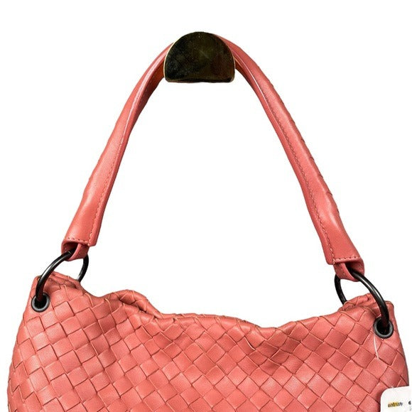 Bottega Veneta Pink π Woven Leather Bucket Hobo Style Oval Base Shoulder Purse