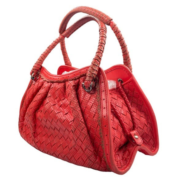 Bottega Veneta Woven Perforated Hand Bag Shoulder Leather Paprika Red Purse