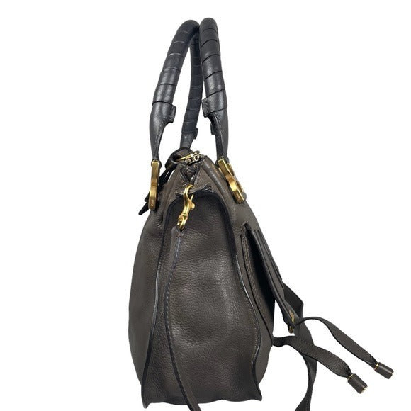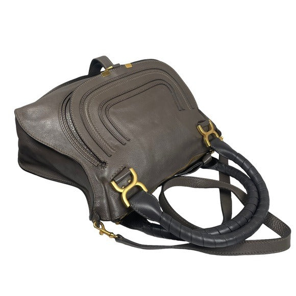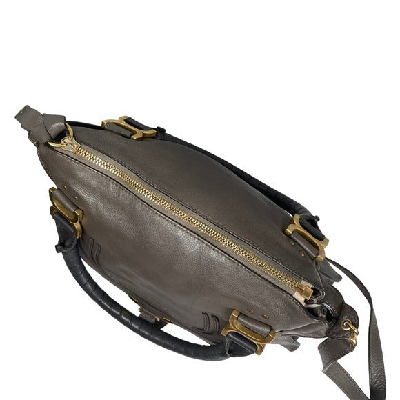 Chloe Grey Medium Satchel Wrapped Leather Handle Zip Flap Crossbody Shoulder Bag