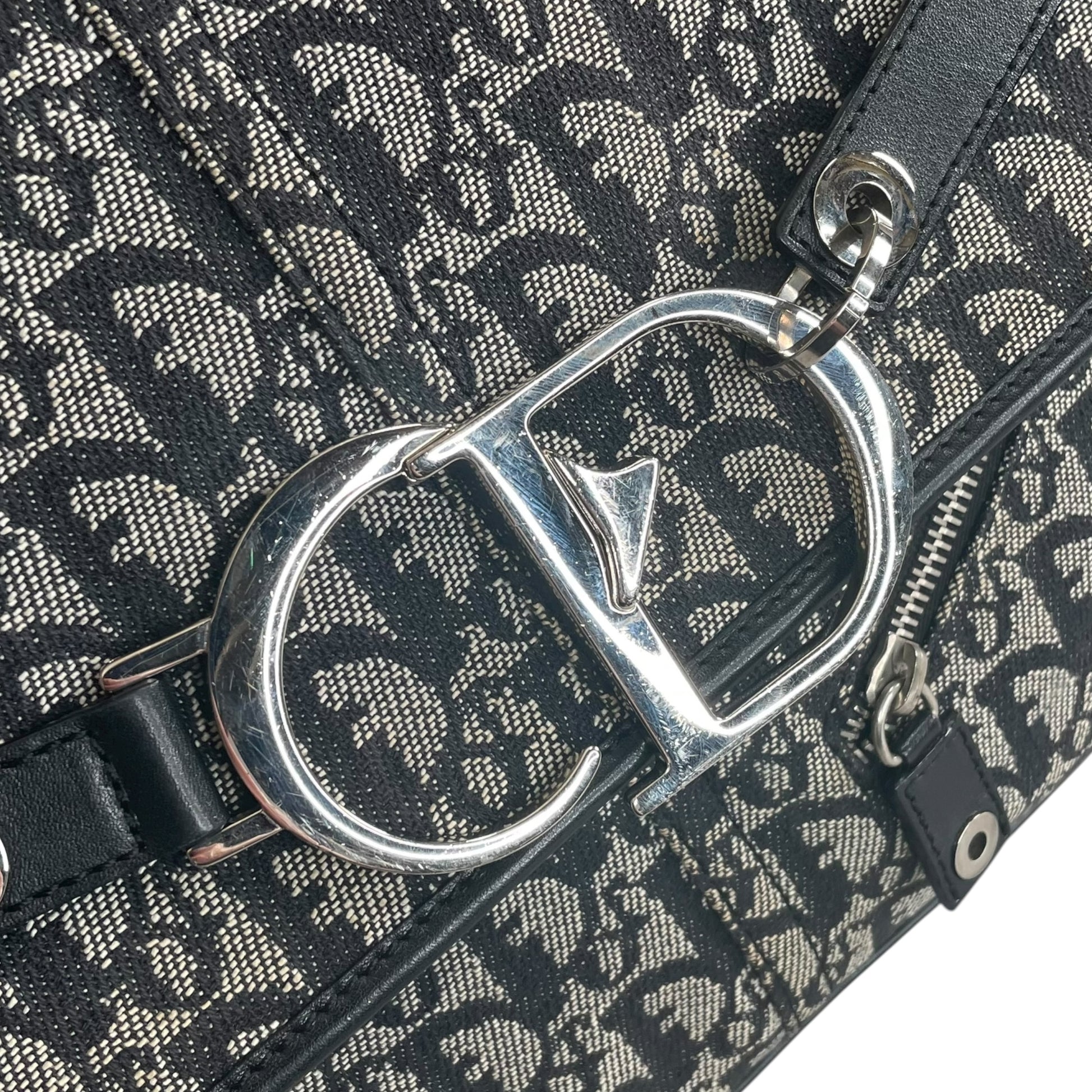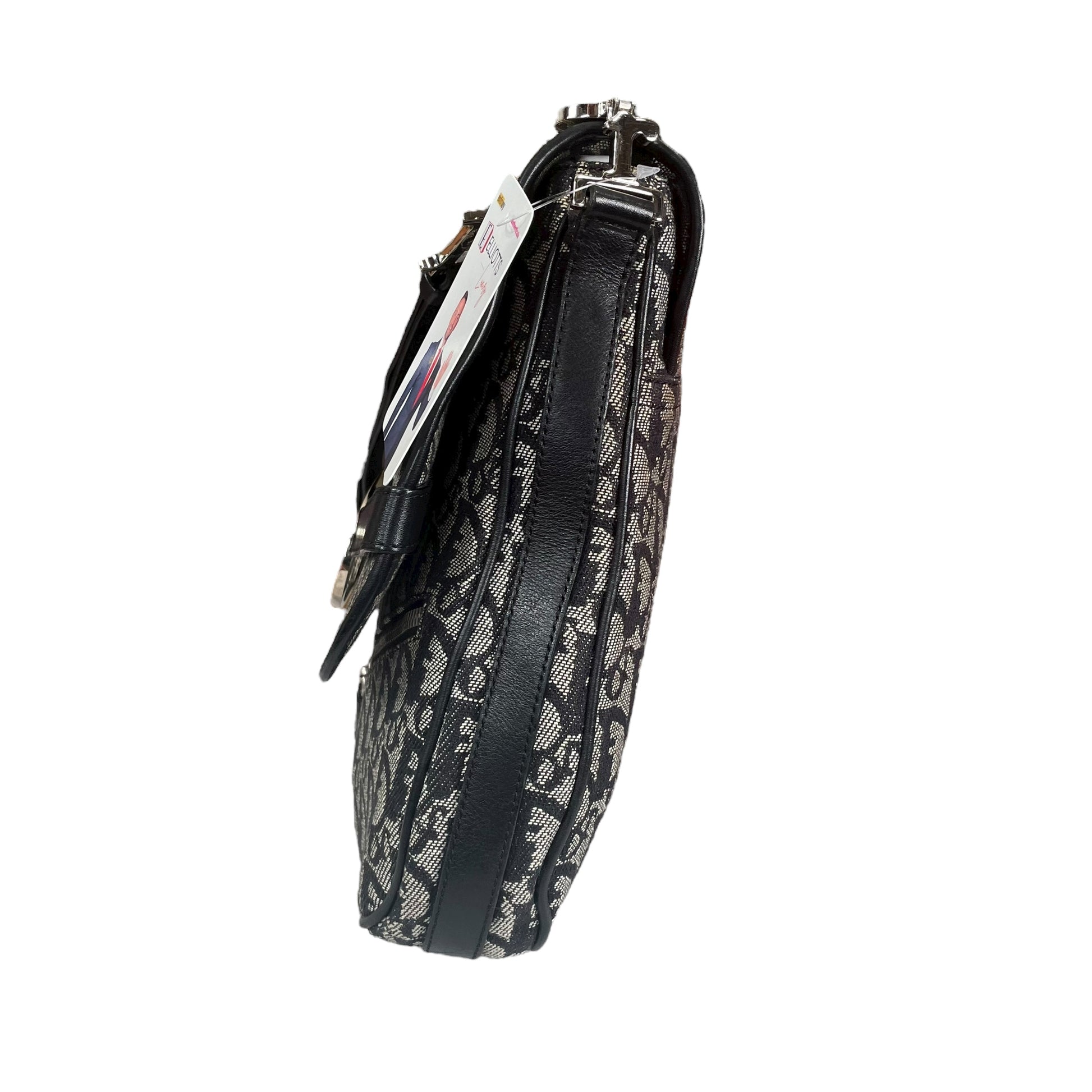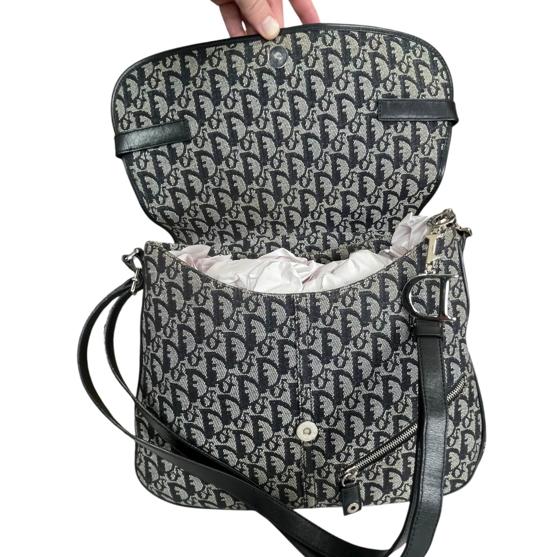 Christian Dior Oblique SHW Black Leather Canvas Trotter Monogram Crossbody 2-Way Shoulder Messenger Purse