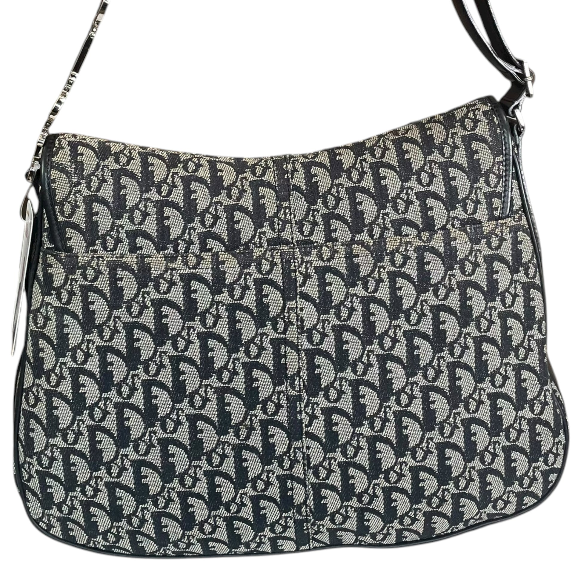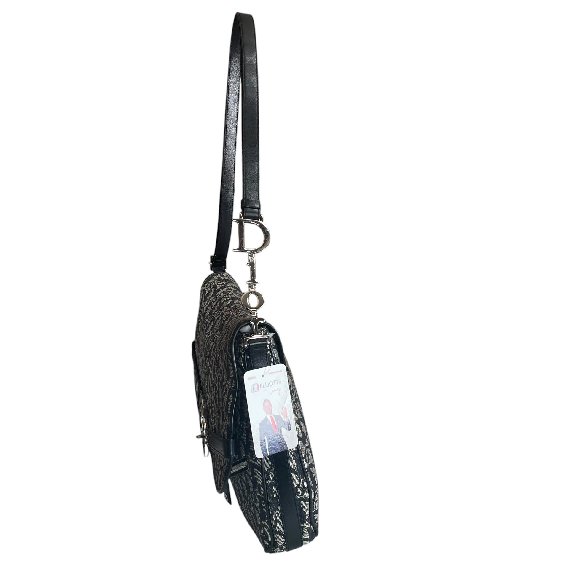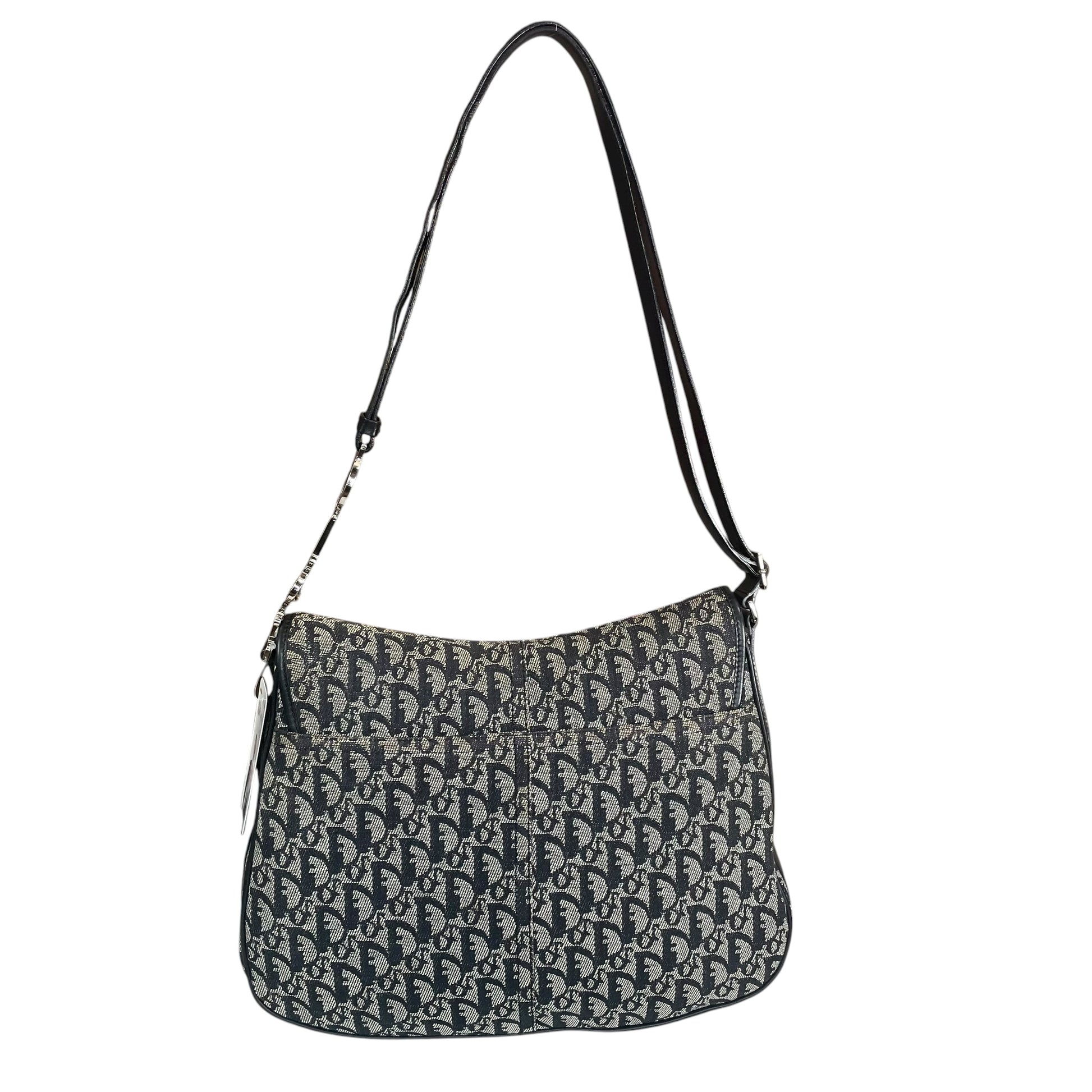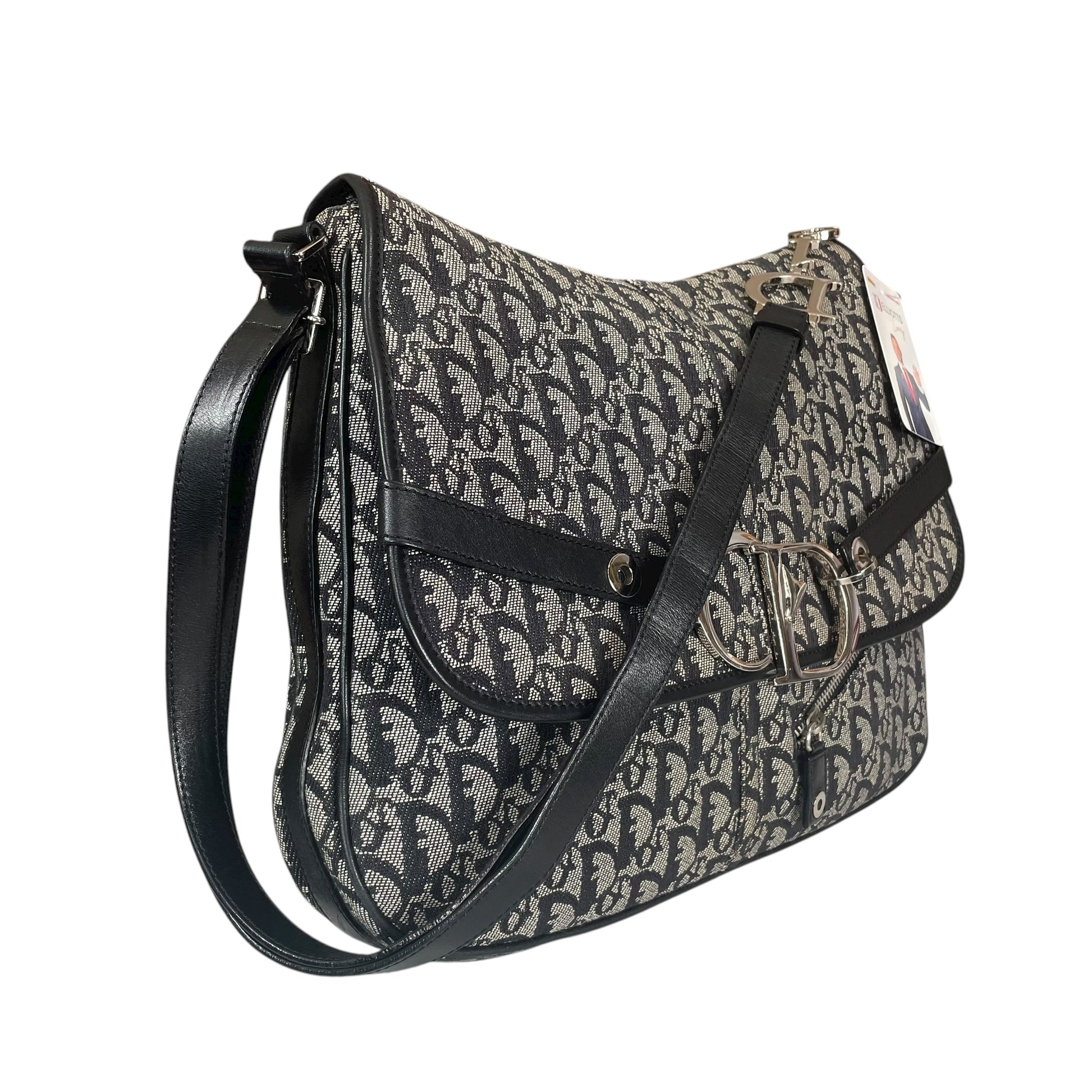 Christian Dior Oblique SHW Black Leather Canvas Trotter Monogram Crossbody 2-Way Shoulder Messenger Purse