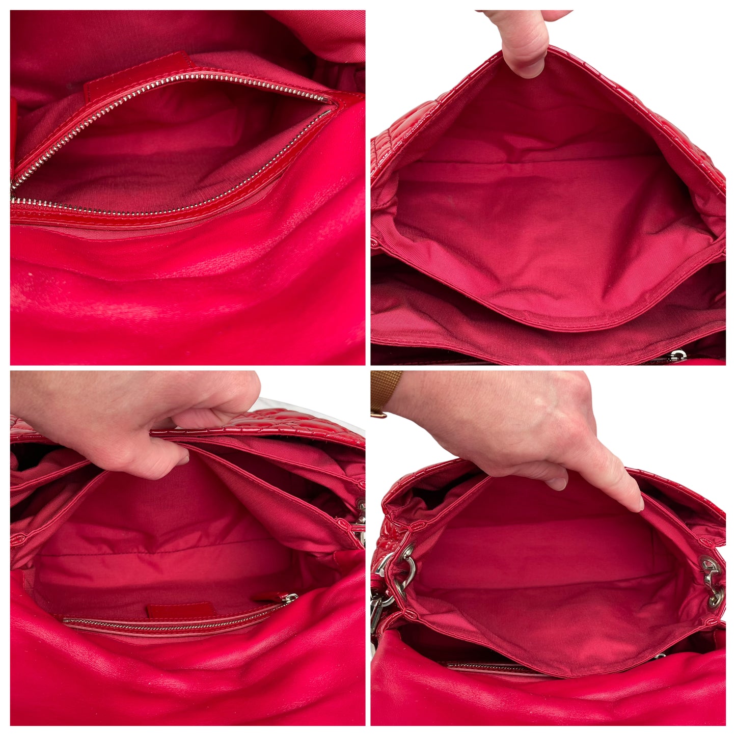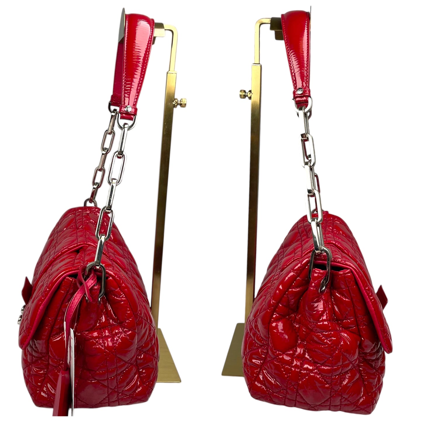 Christian Dior Red New Lock Patent Cannage Quilted Flap Shoulder Chain Purse