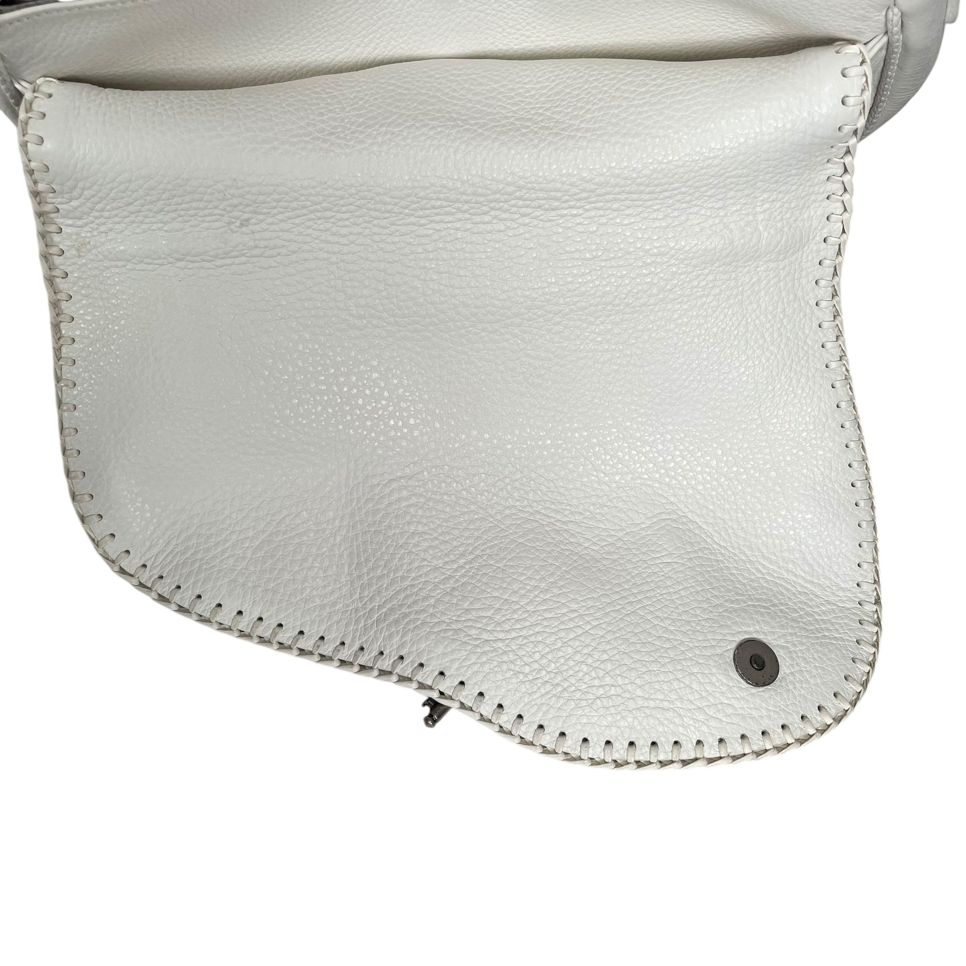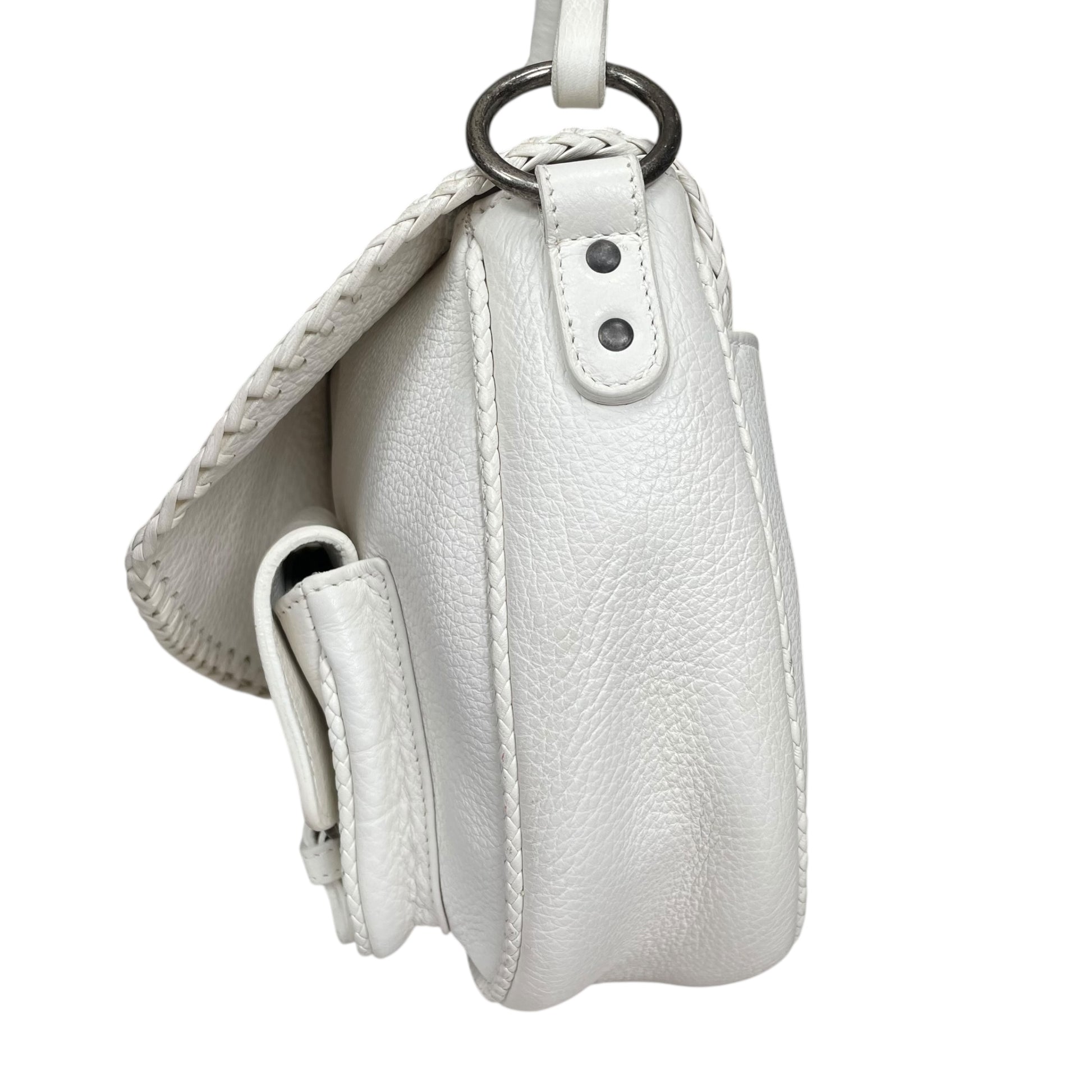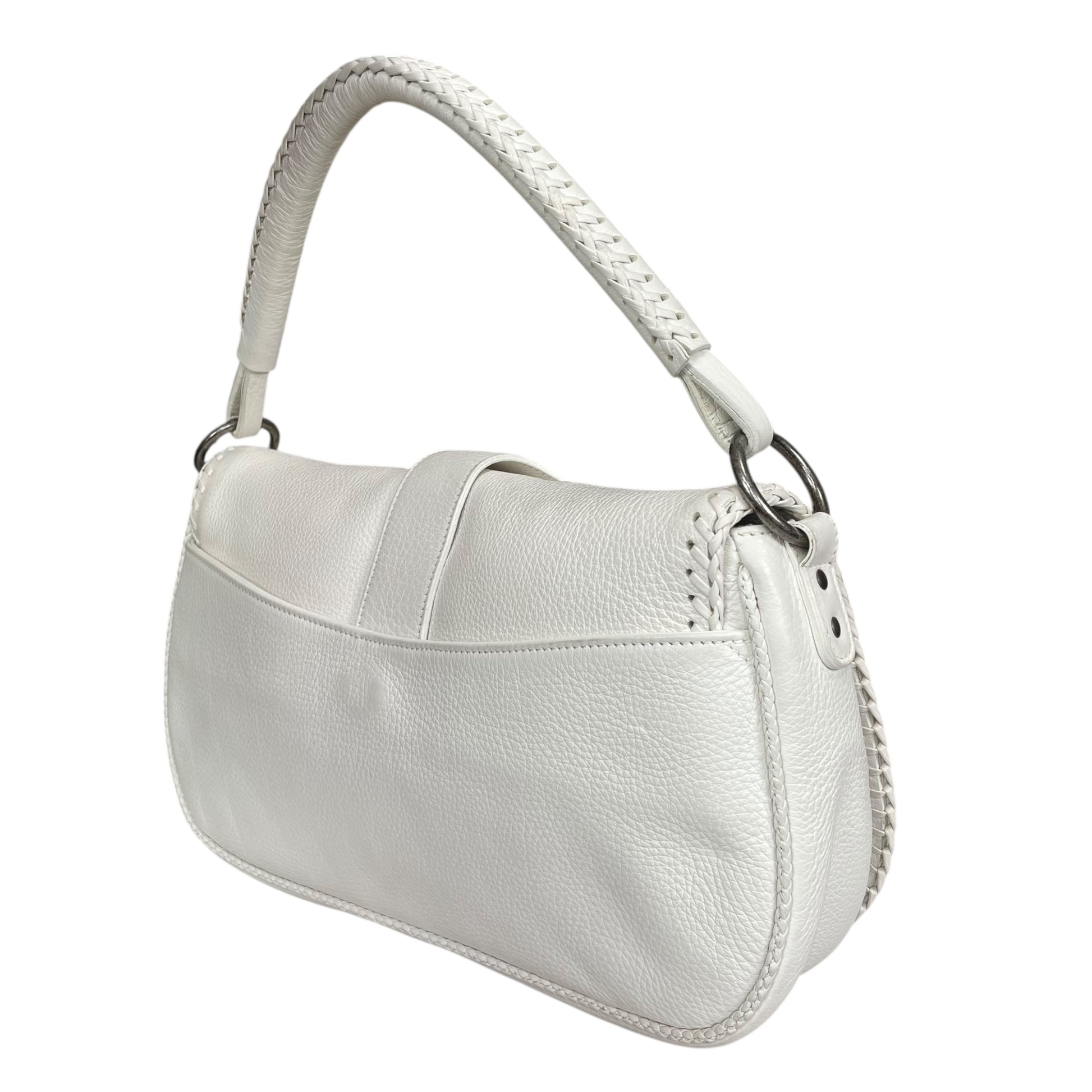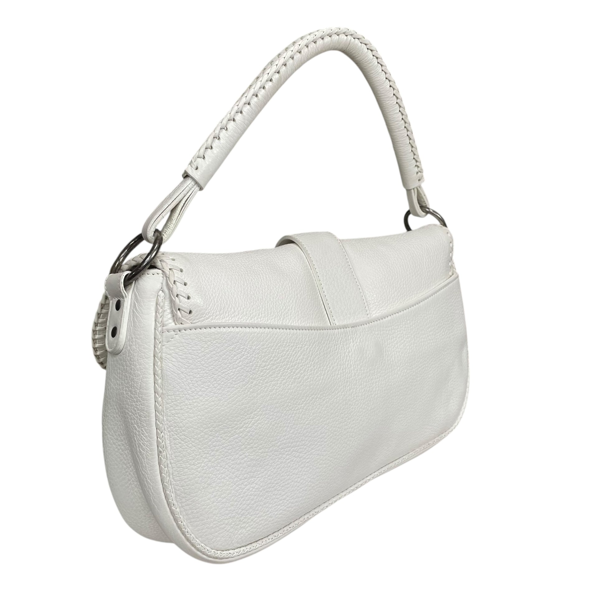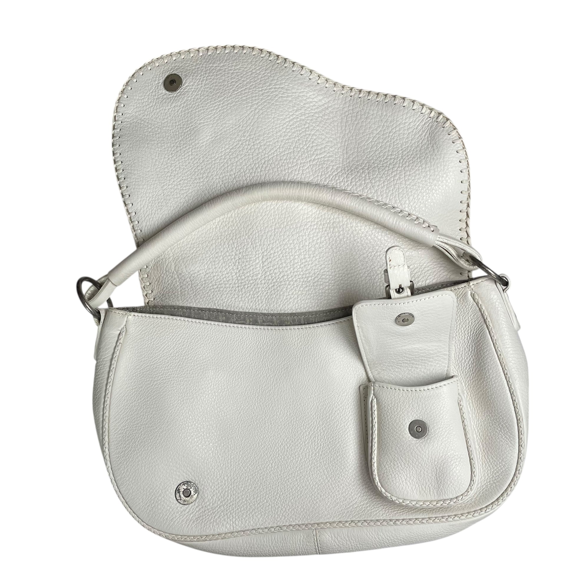 This rare Christian Dior gauchoWhipstitch Shoulder Bag from the early-2000s Galliano era has been fully restored, professionally conditioned, and authenticated — a standout vintage Dior piece in winter white leather with signature whipstitch edging and heavy silver-tone hardware. Clean, structured, and beautifully maintained, this is one of the most collectible Dior silhouettes from the Y2K period.