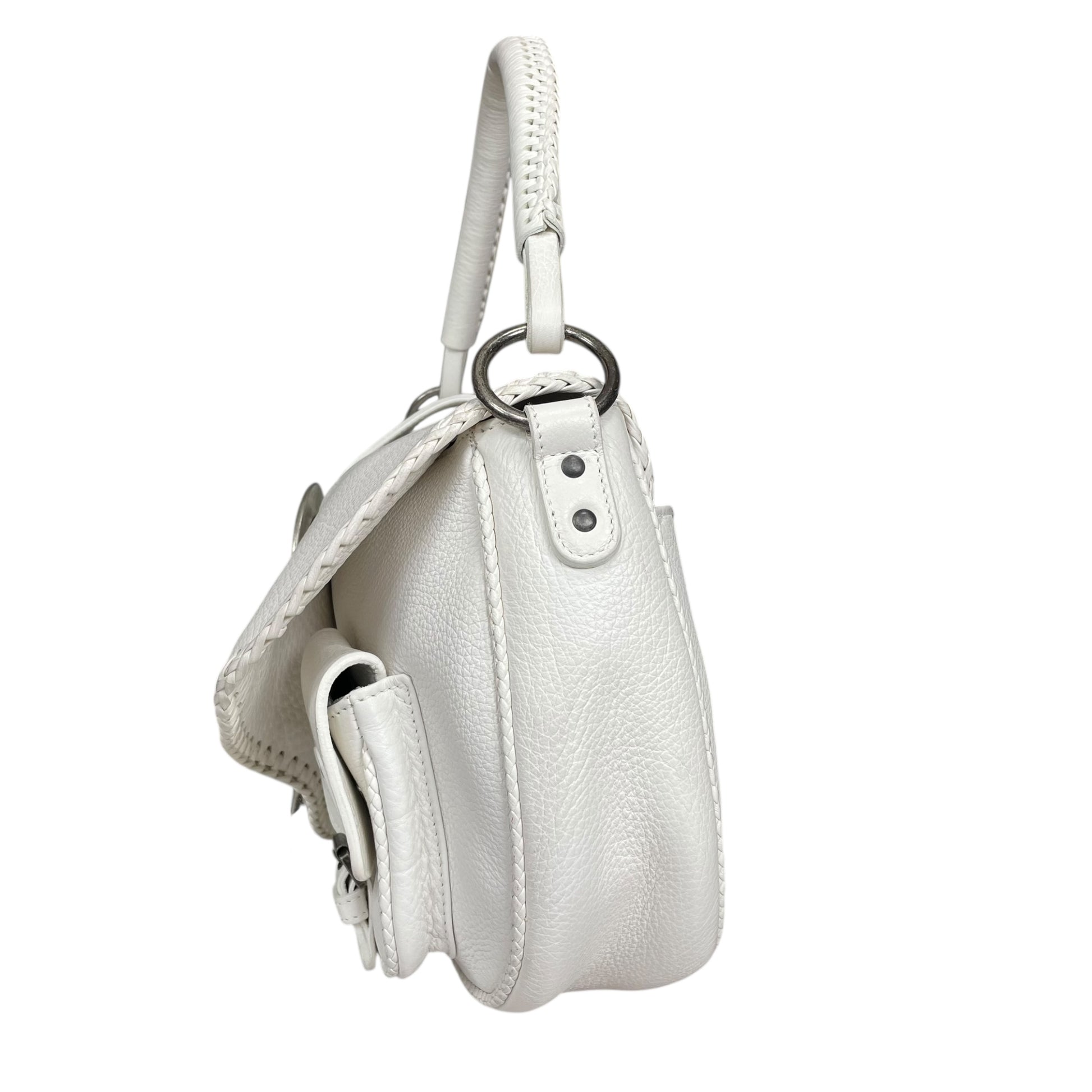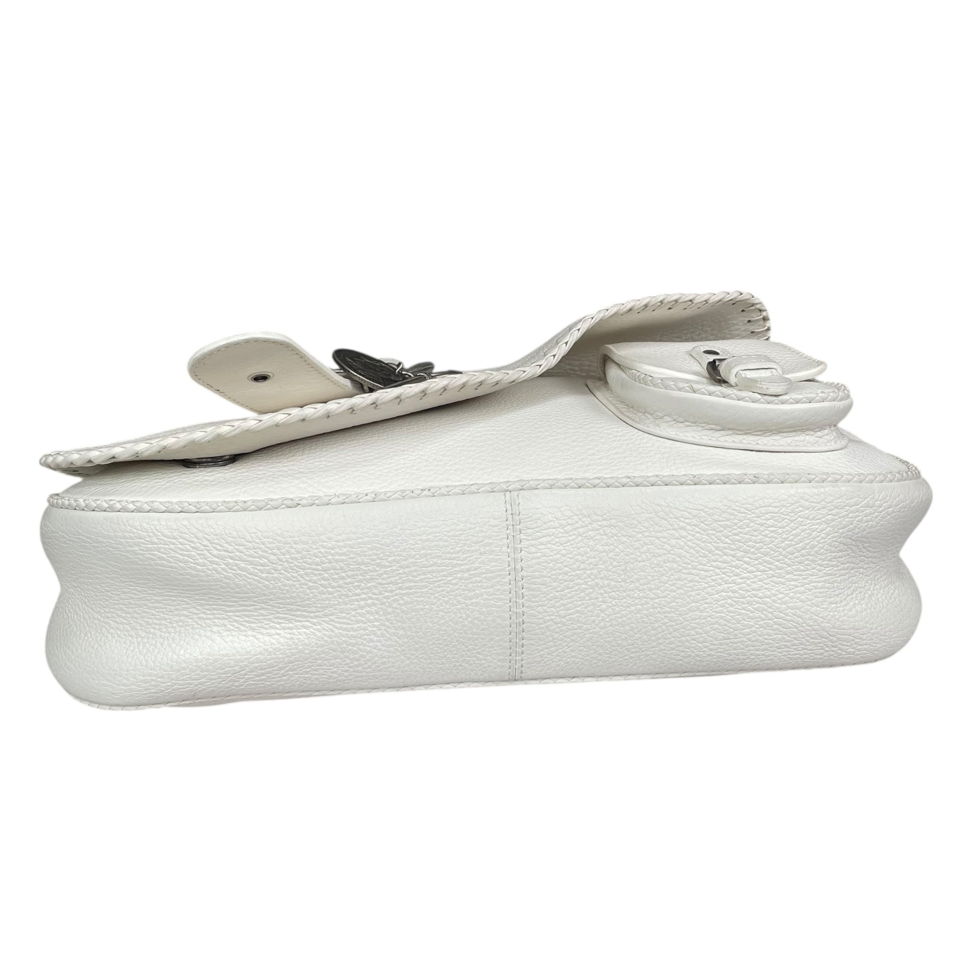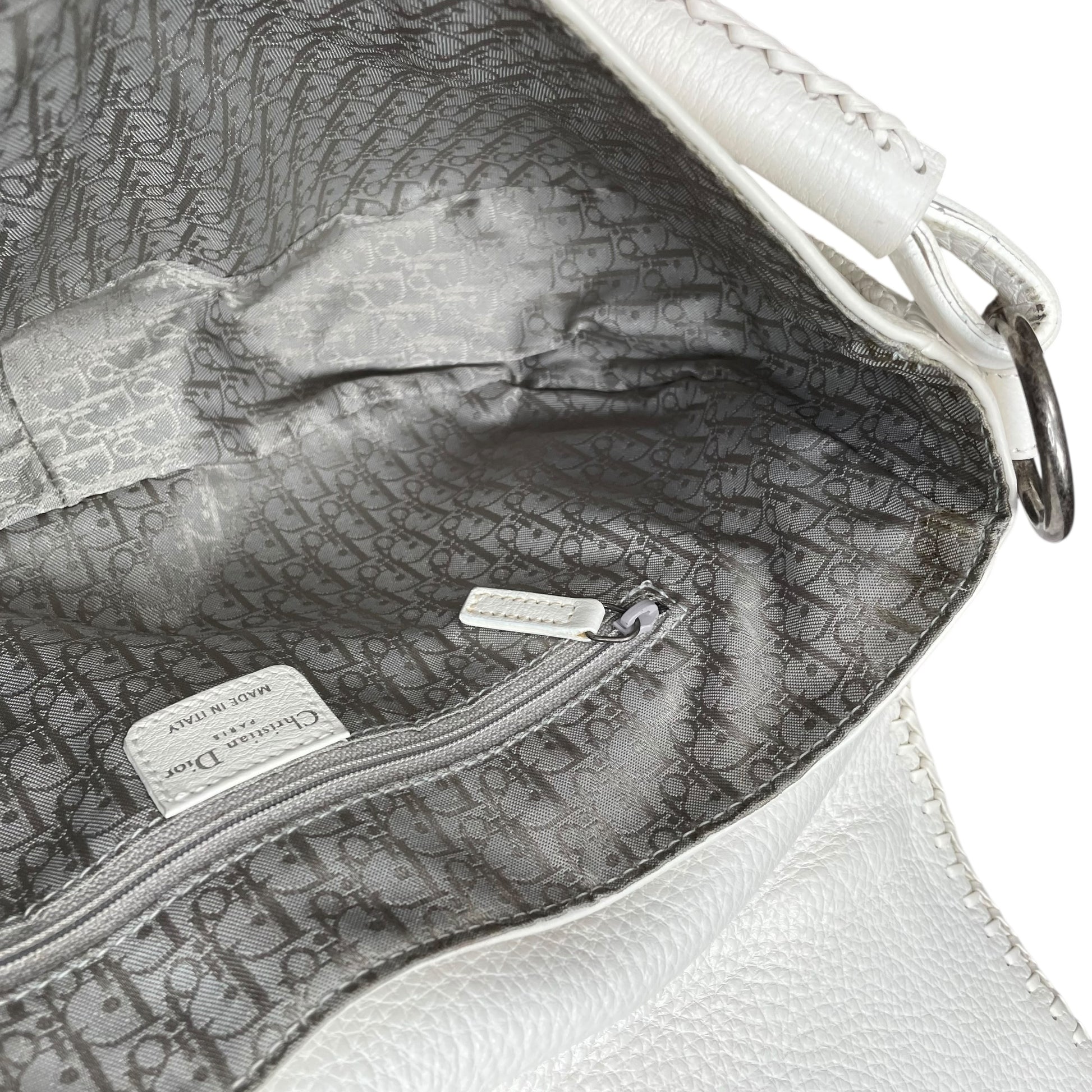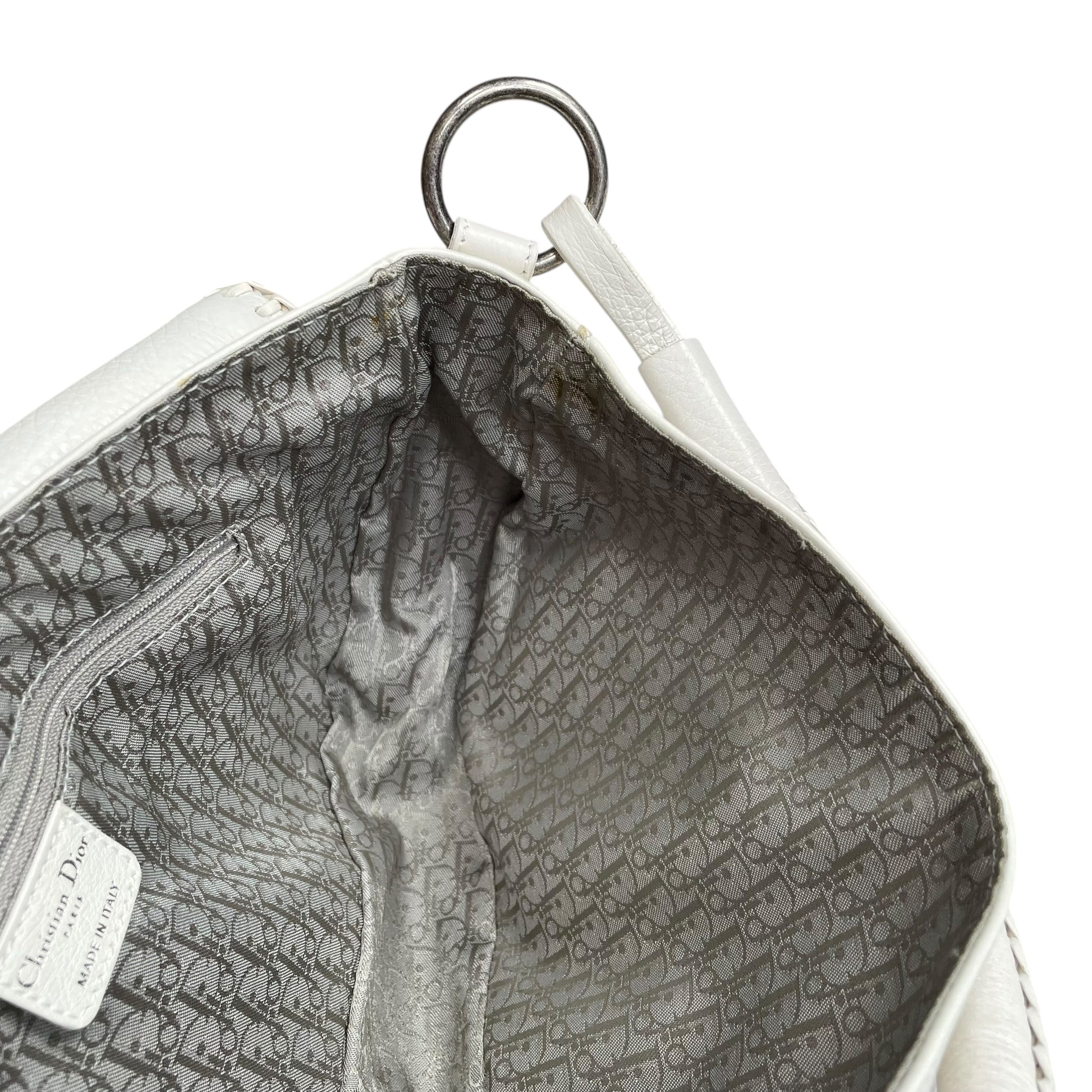 Christian Dior White Gaucho Large Y2K Top Handle Single Flap Shoulder Purse