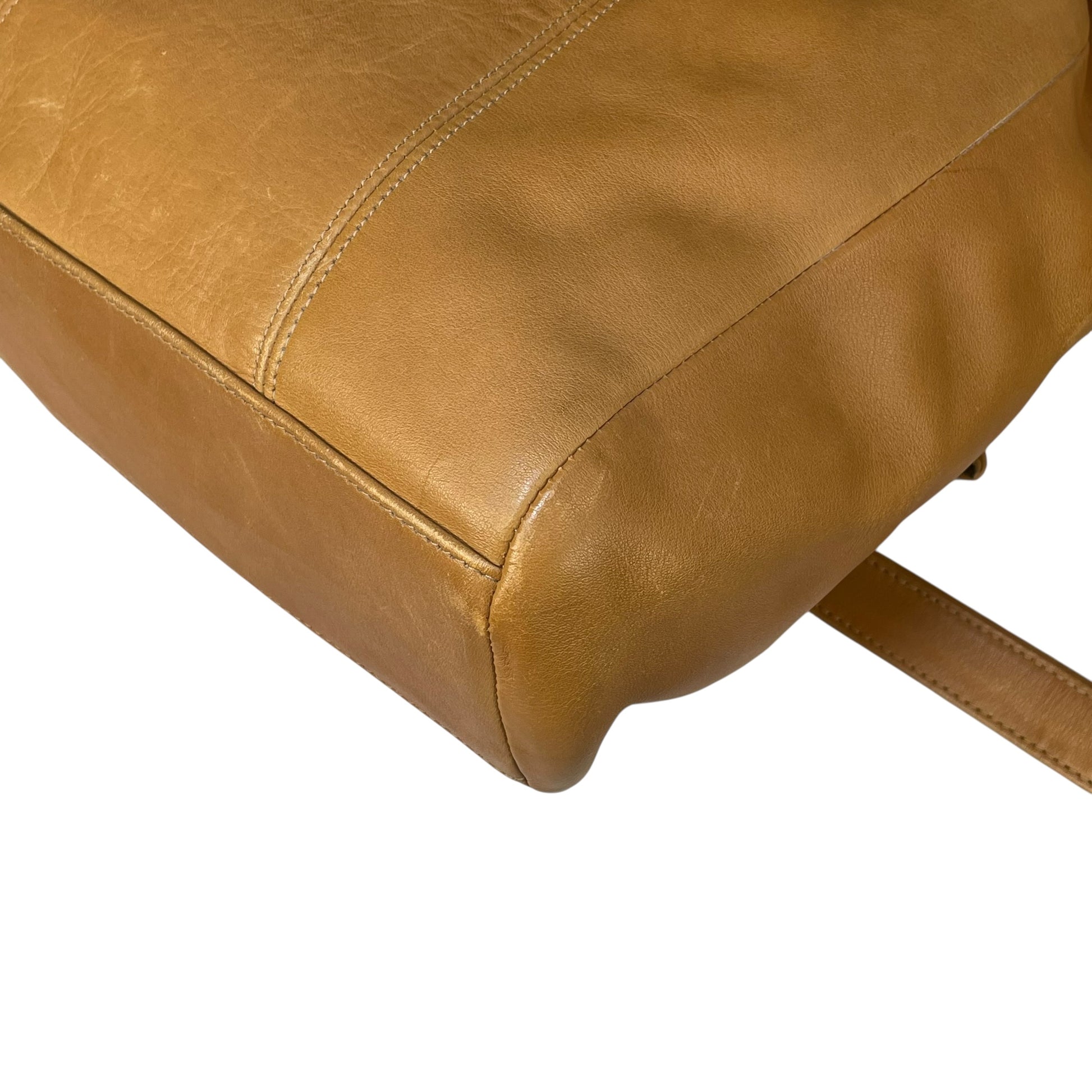 This beautiful vintage Coach Sonoma backpack is crafted from soft glove-tanned leather in a rich golden tan color that has developed a lovely natural patina over time. The Sonoma collection was produced in the mid-1990s and is known for its supple leather, relaxed structure, and understated minimalist design.