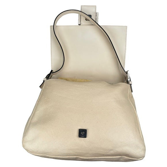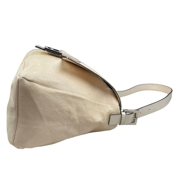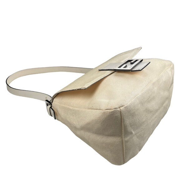 Fendi Mama Baguette Micro Woven Canvas White Strap Leather Logo