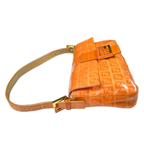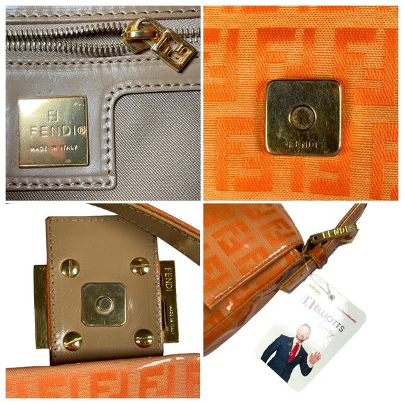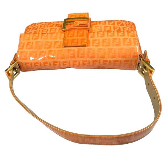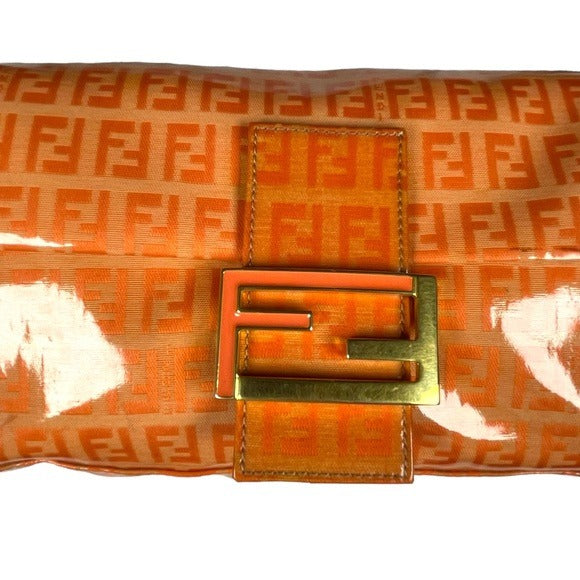 Fendi Orange Crush Coated Canvas Zucchino Baguette Flap Shoulder Purse Bag