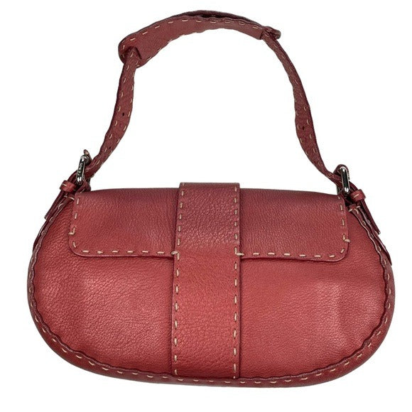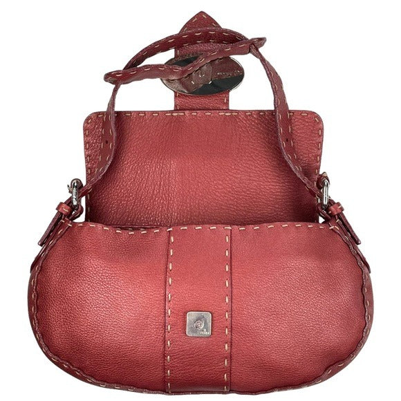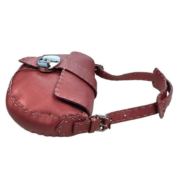 Fendi Selleria Sterling Leather Bordeaux Metallic Baguette Purse
