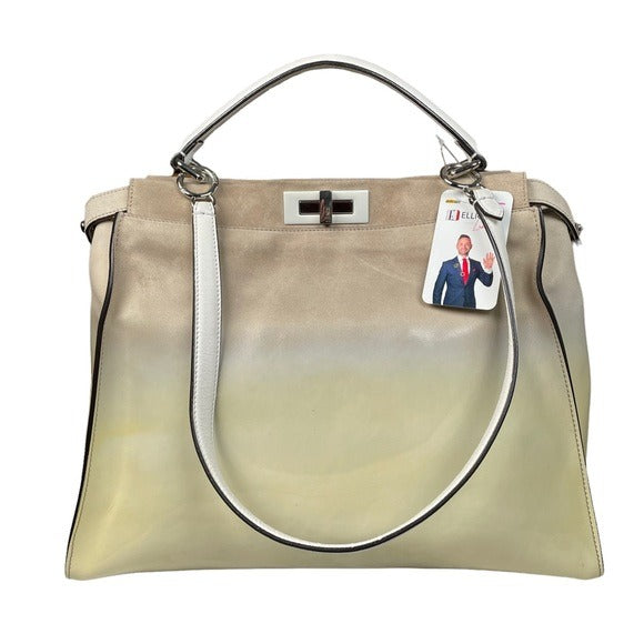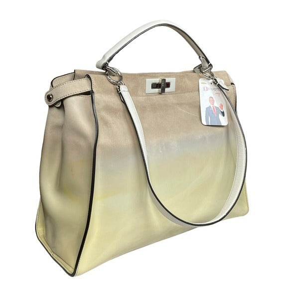 Fendi XL Peek-A-Boo Suede Patent Leather Multi Textile White Yellow Mega Bag