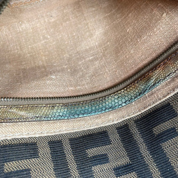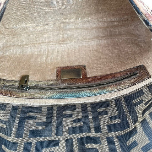 Fendi Zucca Canvas Cheetah Calf Hair Leather Lizard Skin Baguette Shoulder Purse