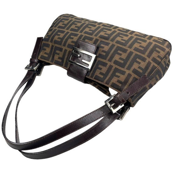 Fendi Zucca Dual Handle Shoulder Baguette Leather Canvas Purse