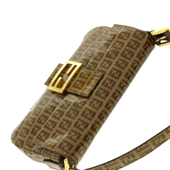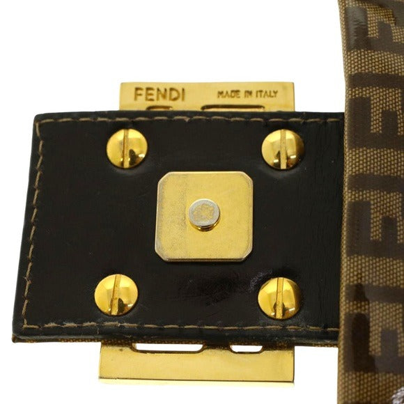 Fendi Zucchino Coated Canvas Baguette Shoulder Leather Strap Bag Beige Purse