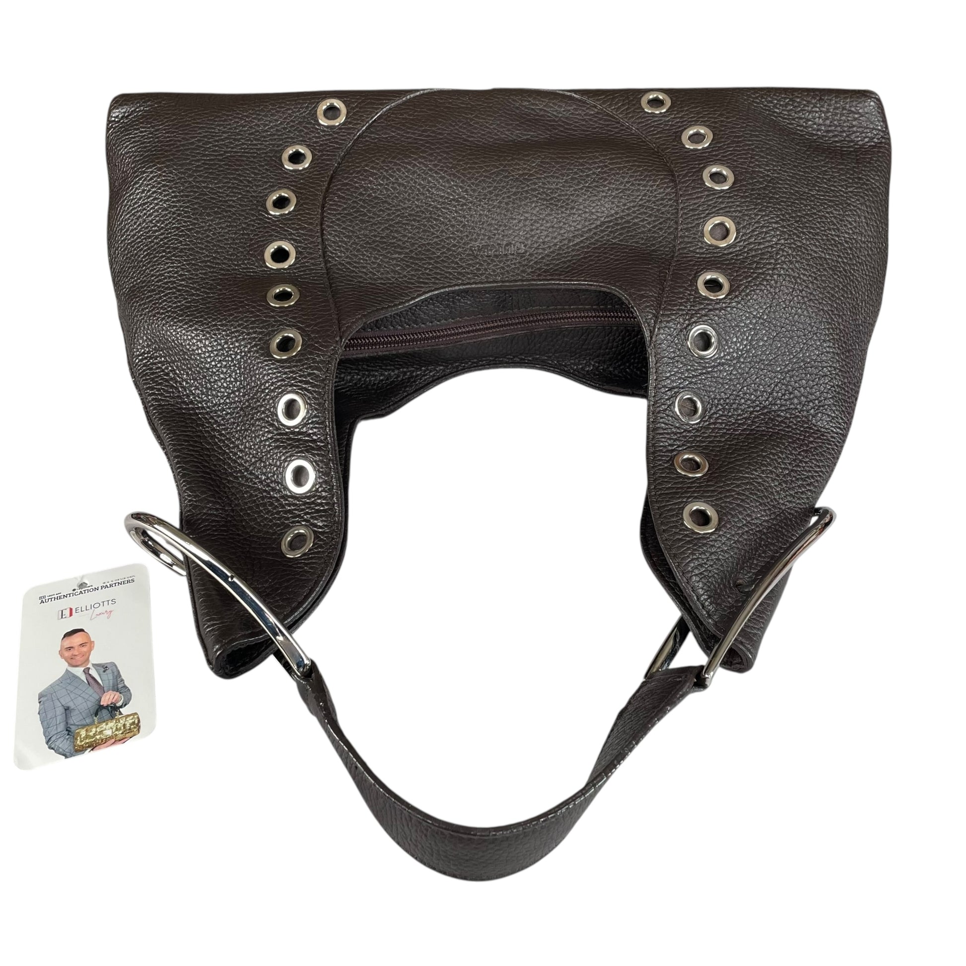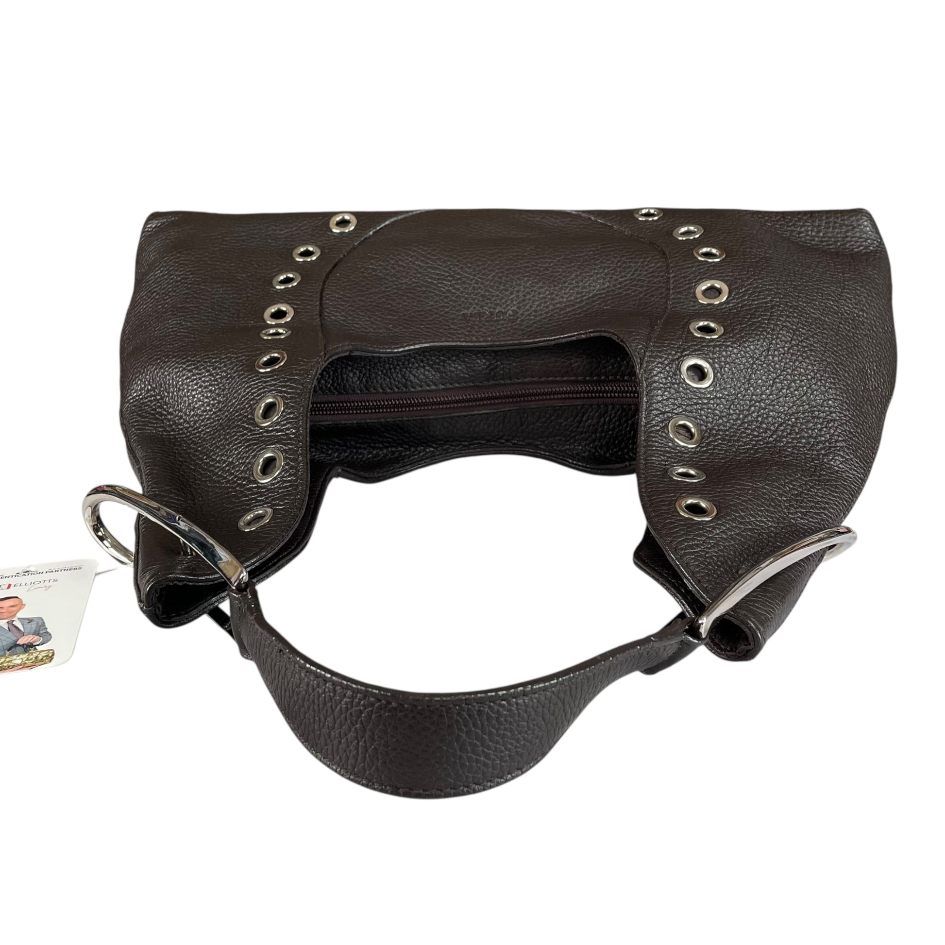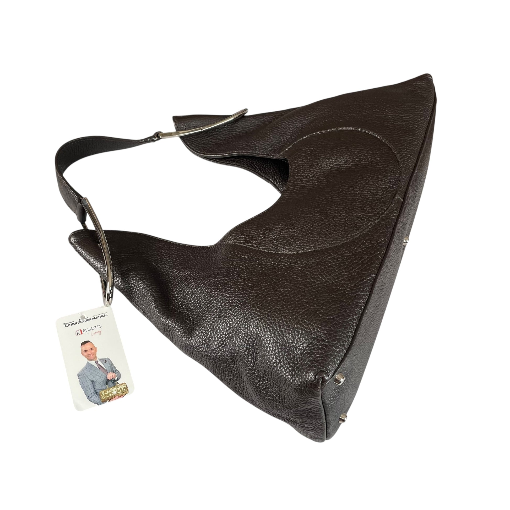 Furla Brown Pebbled Leather Hobo Bag SHW Double Sided Eyelet Deep D Shoulder Bag