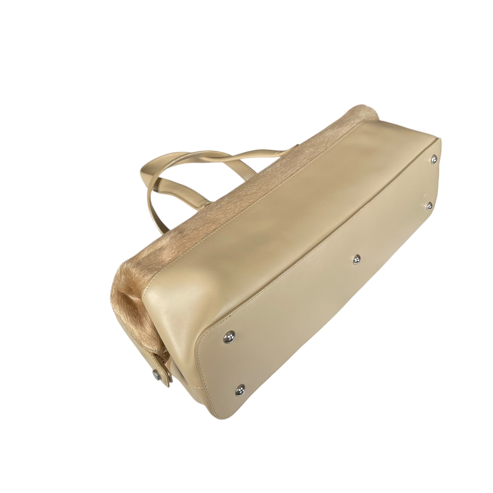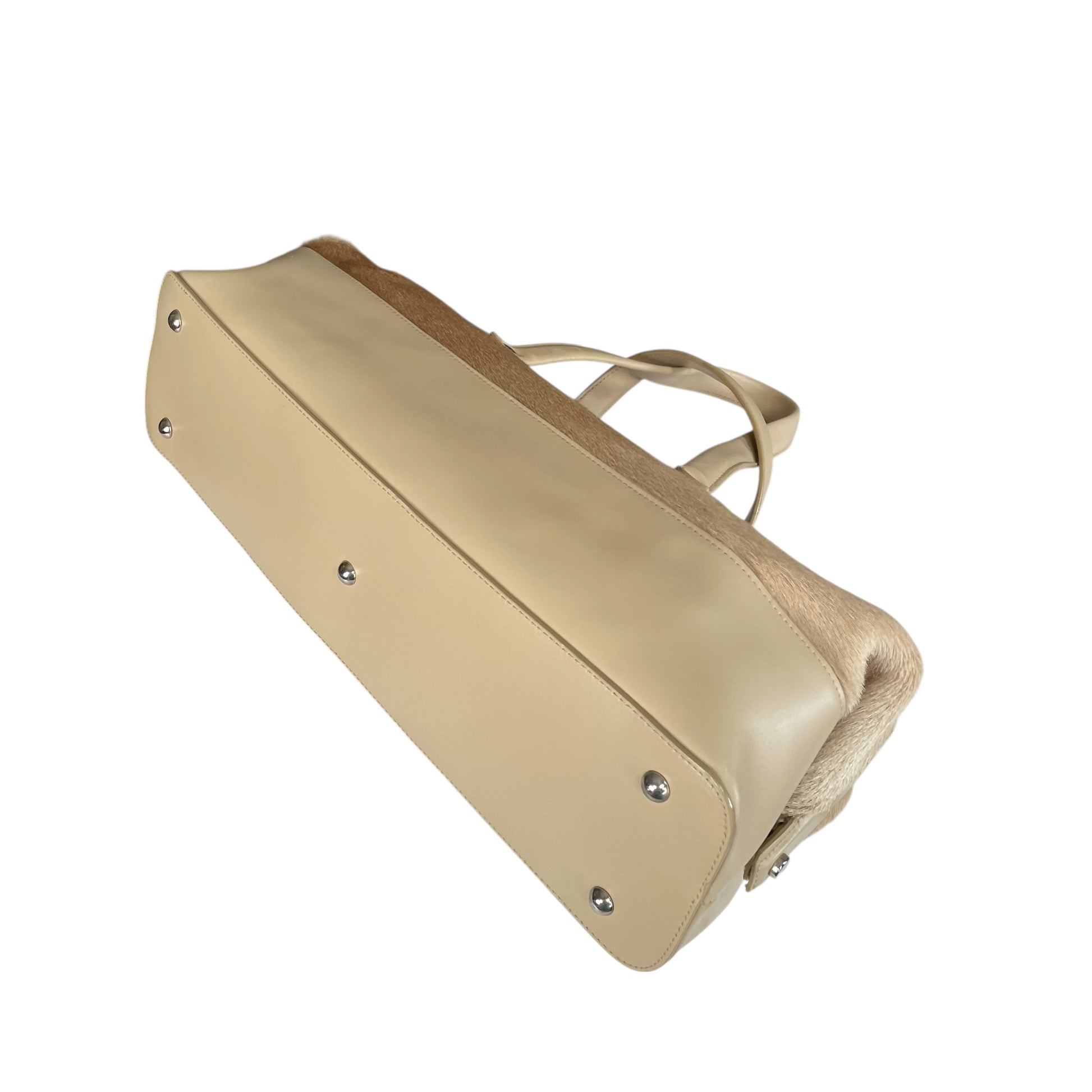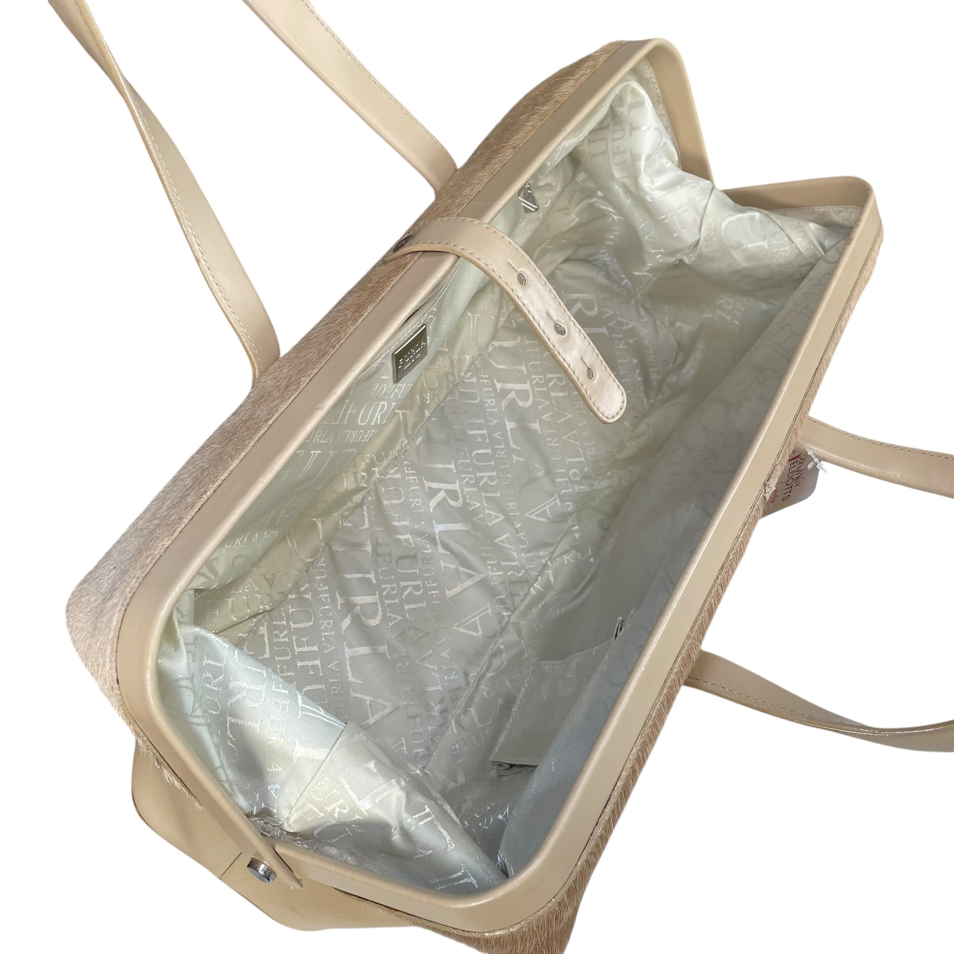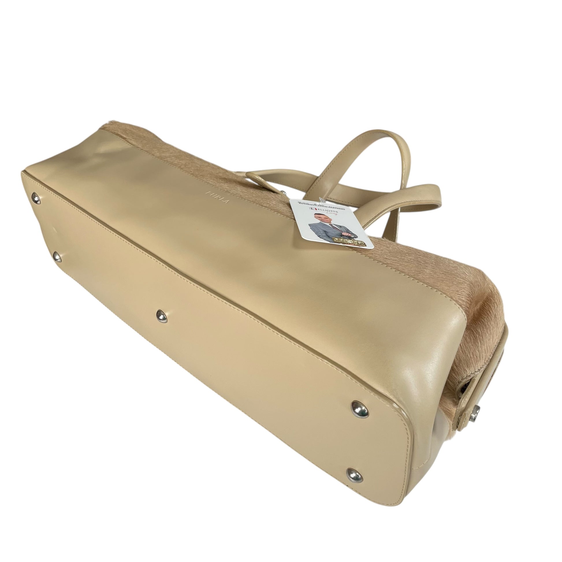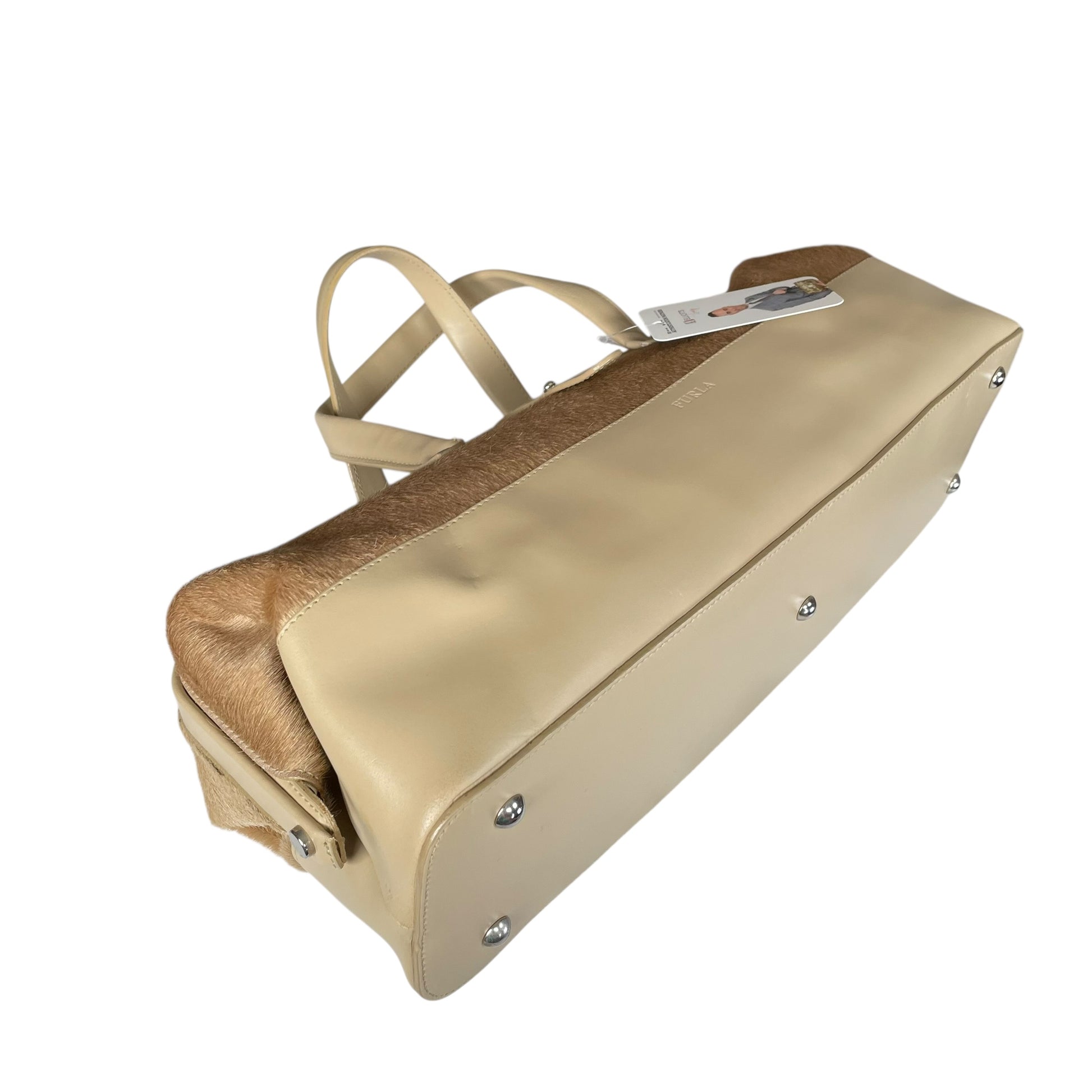 Furla Pony Hair Doctor Bag Tan Calf Hair Leather Satchel 17” Large Italy