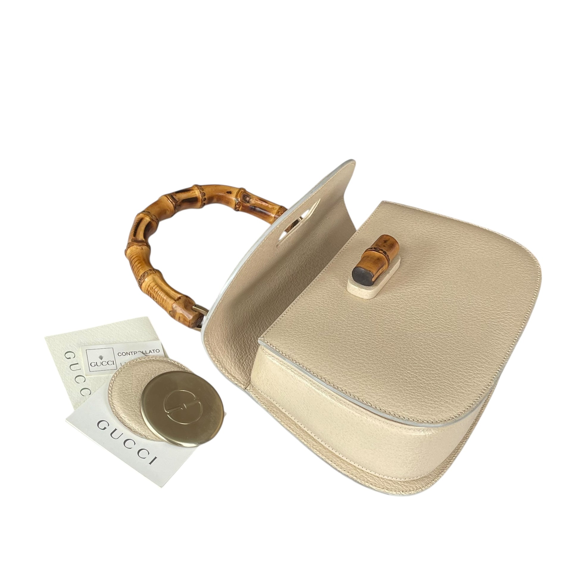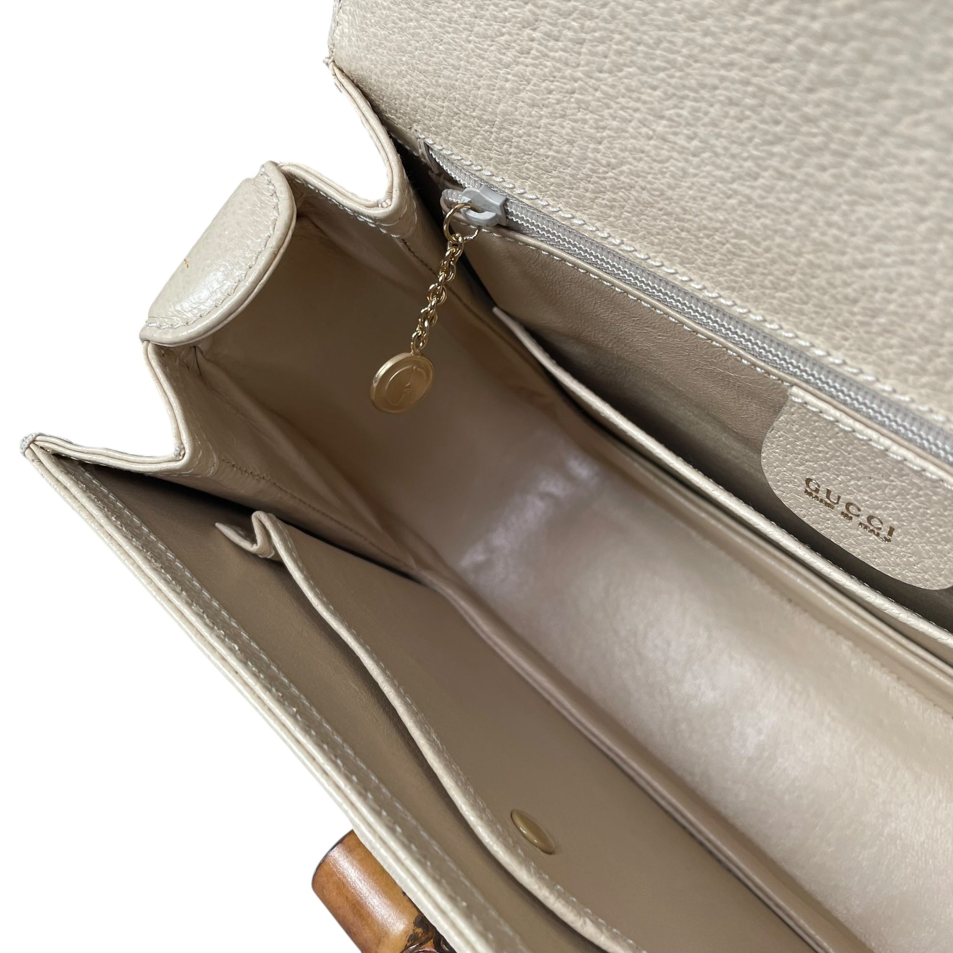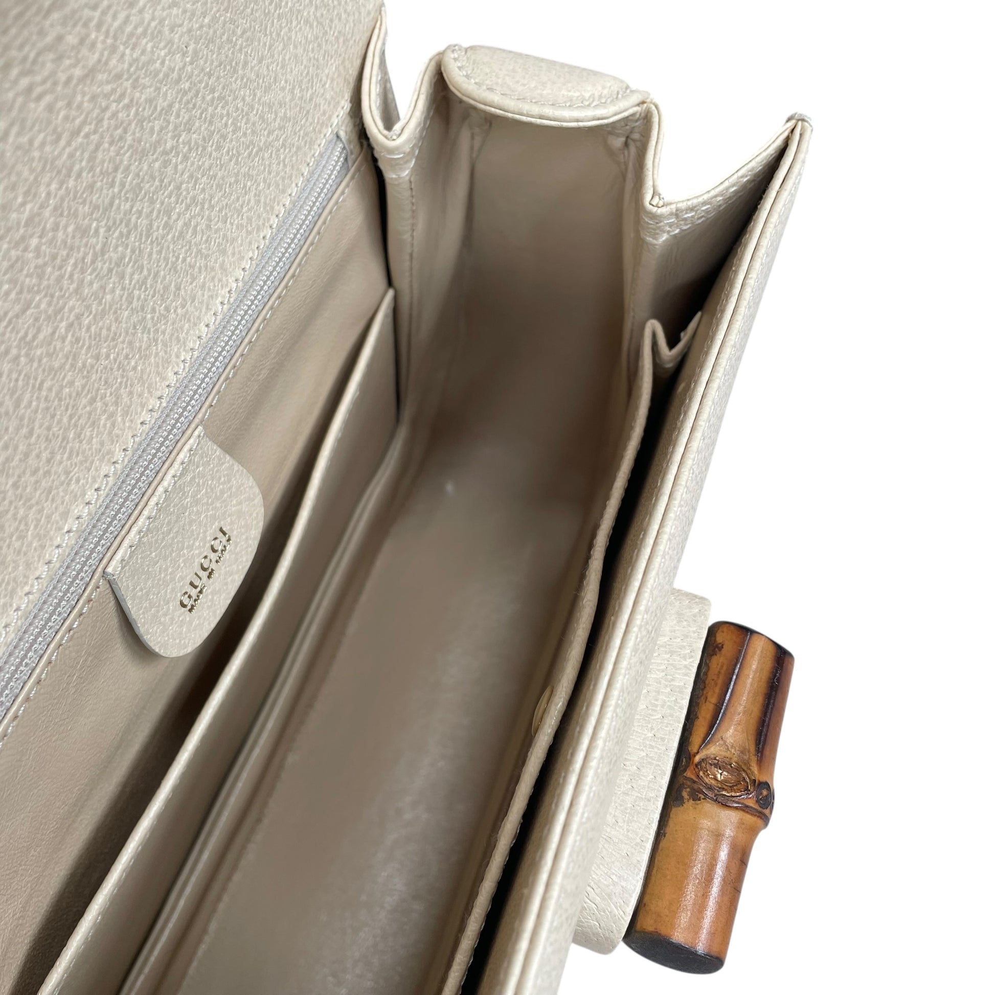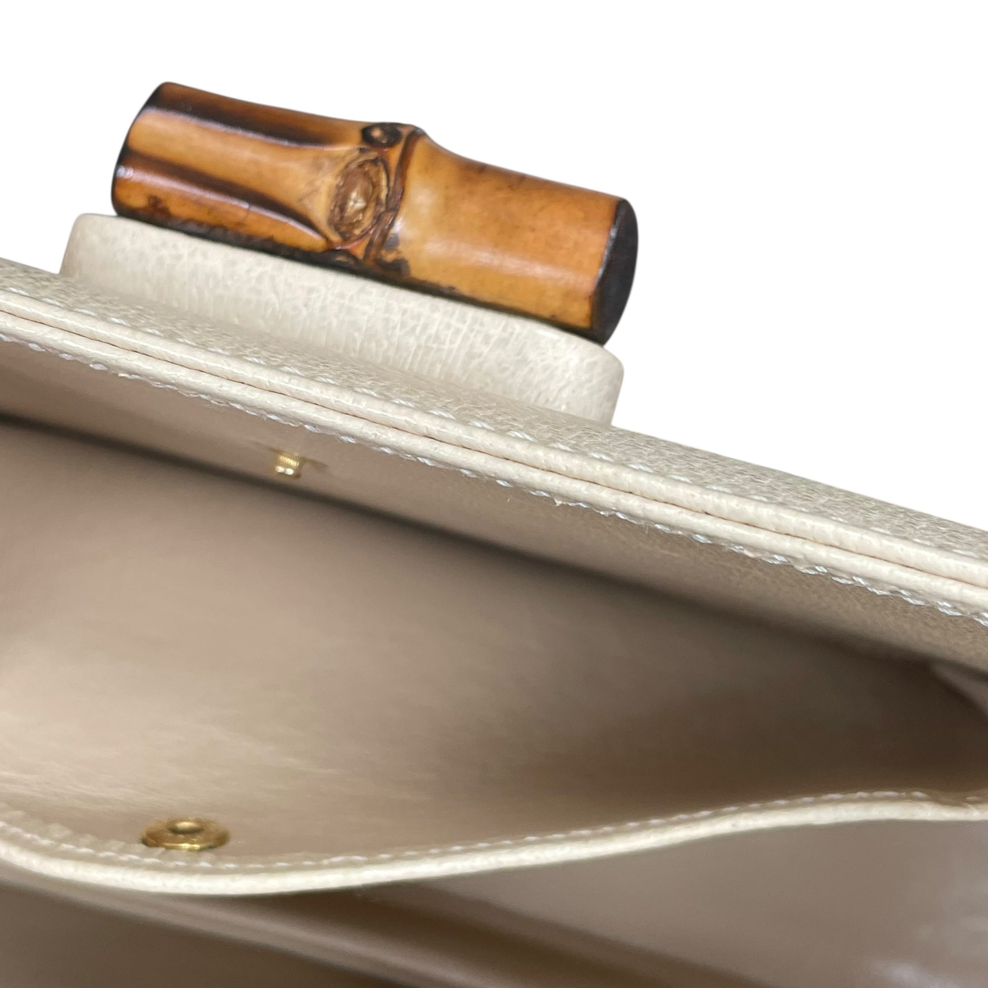 Gucci 1947 Bamboo Bone White Bamboo Turn-Lock Top Handle Flap Purse