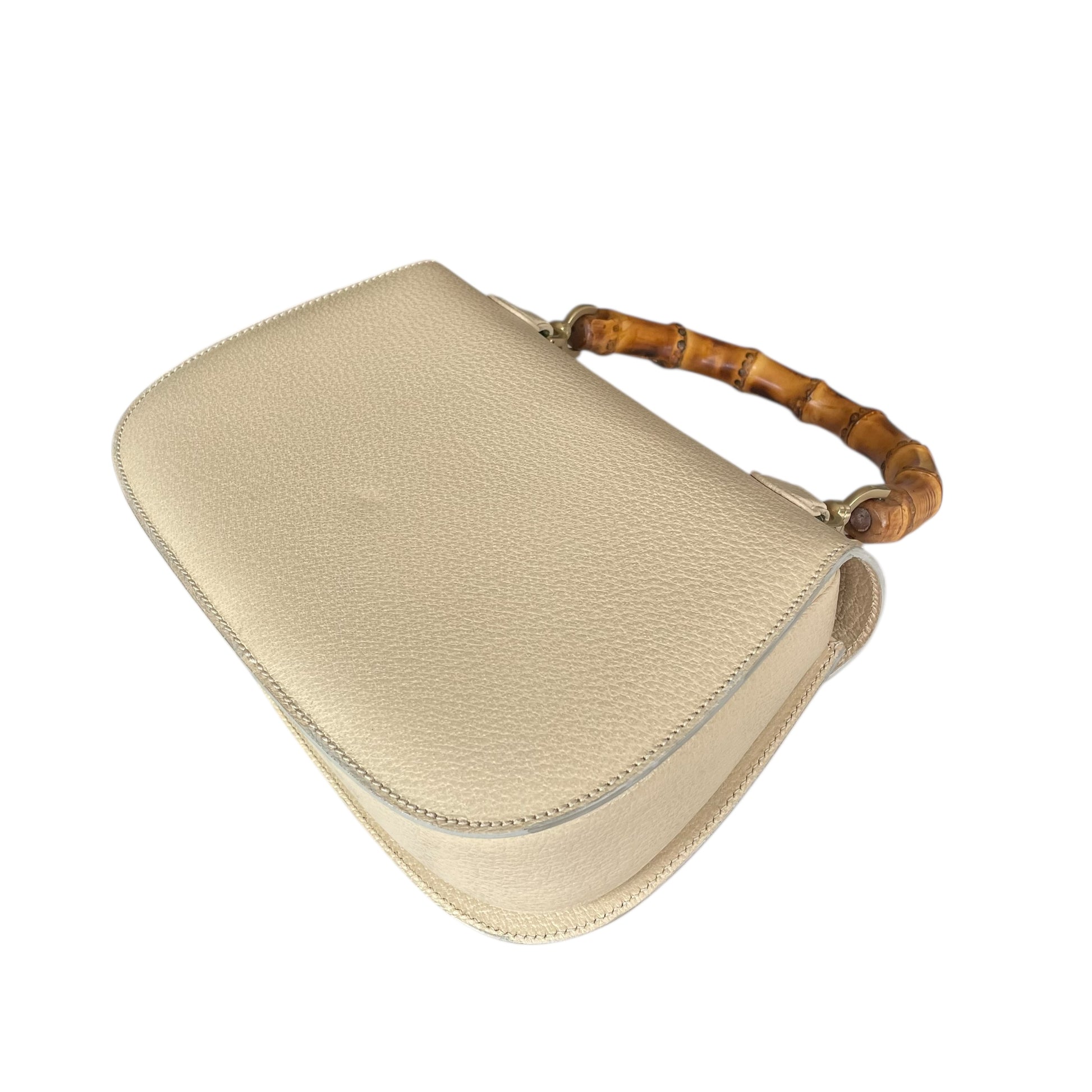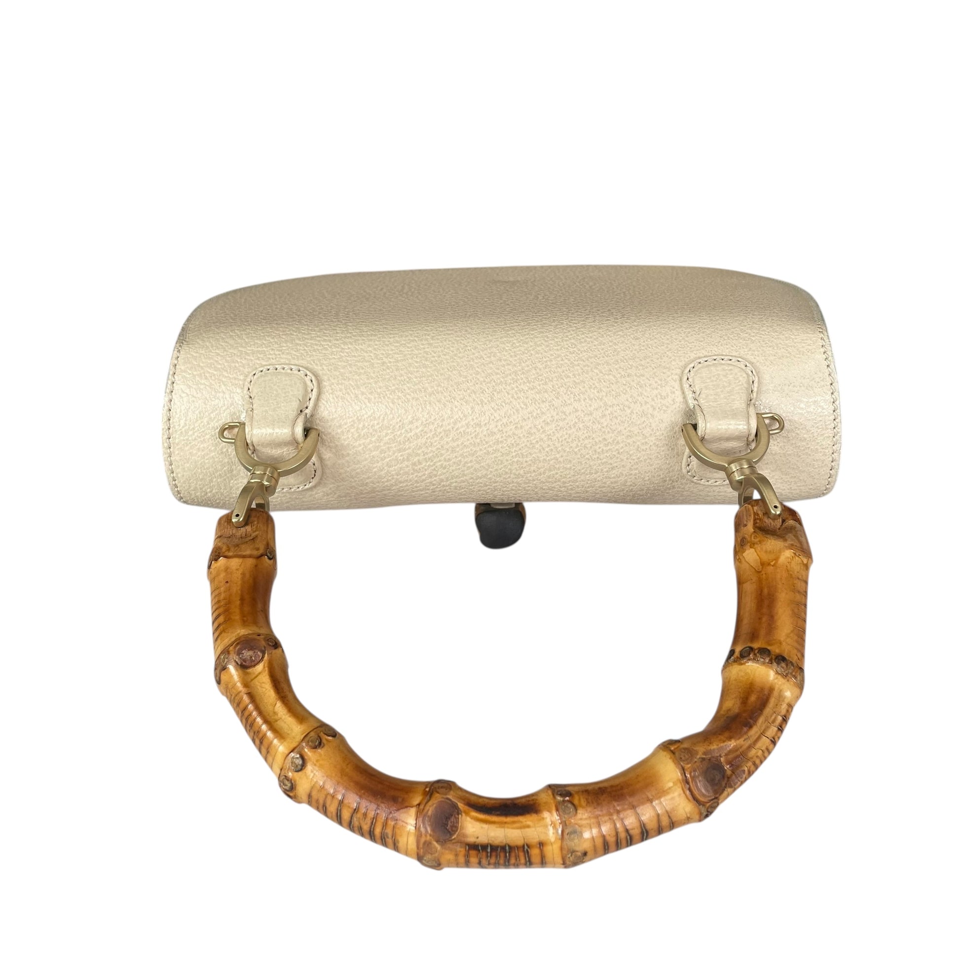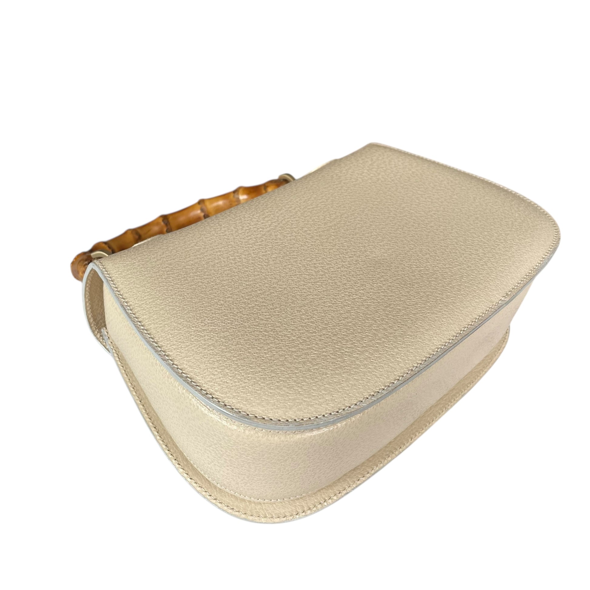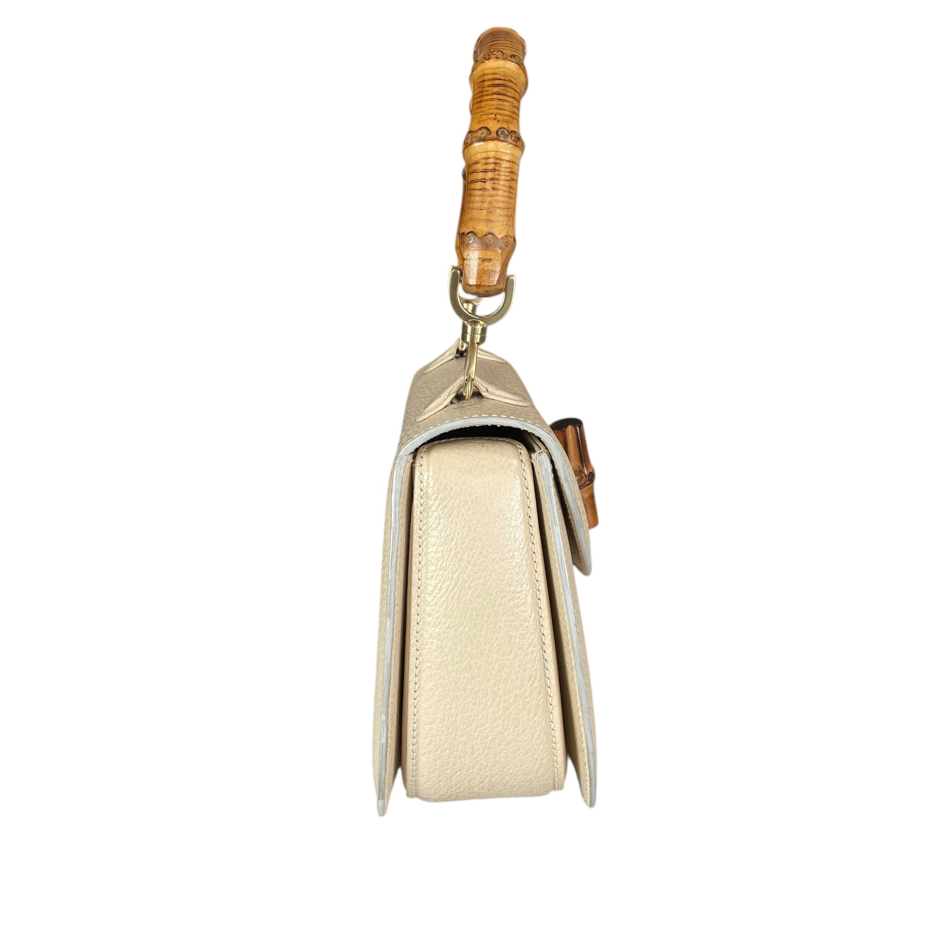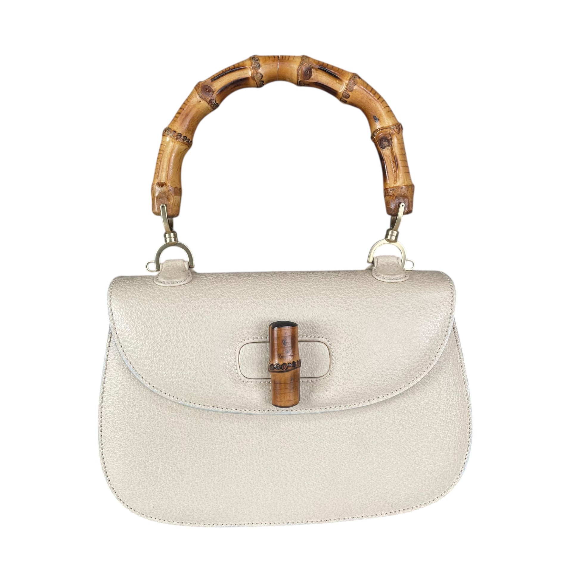 Gucci 1947 Bamboo Bone White Bamboo Turn-Lock Top Handle Flap Purse
