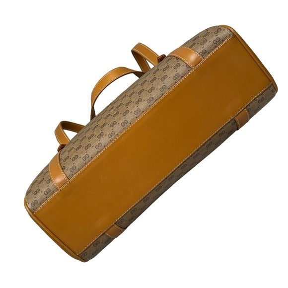 Gucci GG Micro Satchel Canvas Leather Tan Three File Shoulder Tote Purse Bag