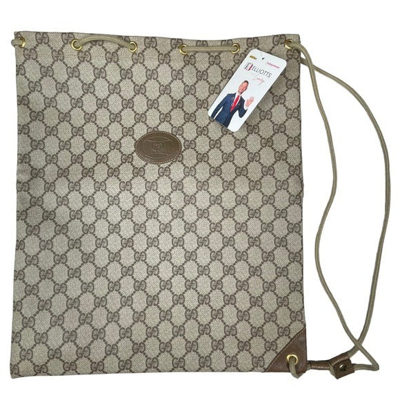 Gucci GG Monogram PVC Drawstring Sneaker Shoes Carry Side Bag Slim Backpack 15”