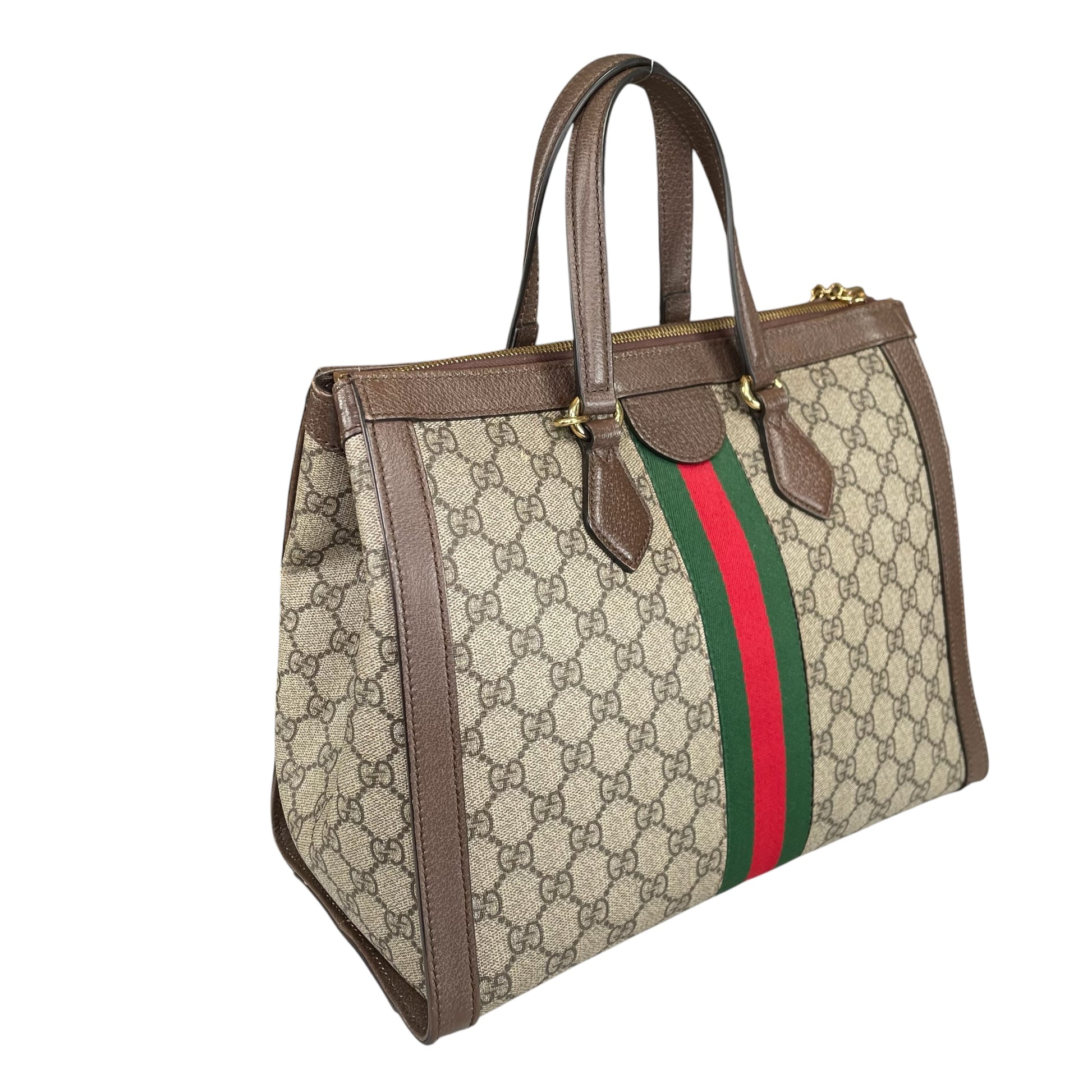Gucci Ophidia Medium Tote | GG Supreme Canvas | Brown Leather Trim | Gold Hardware | Two-Way Carry | Authenticated