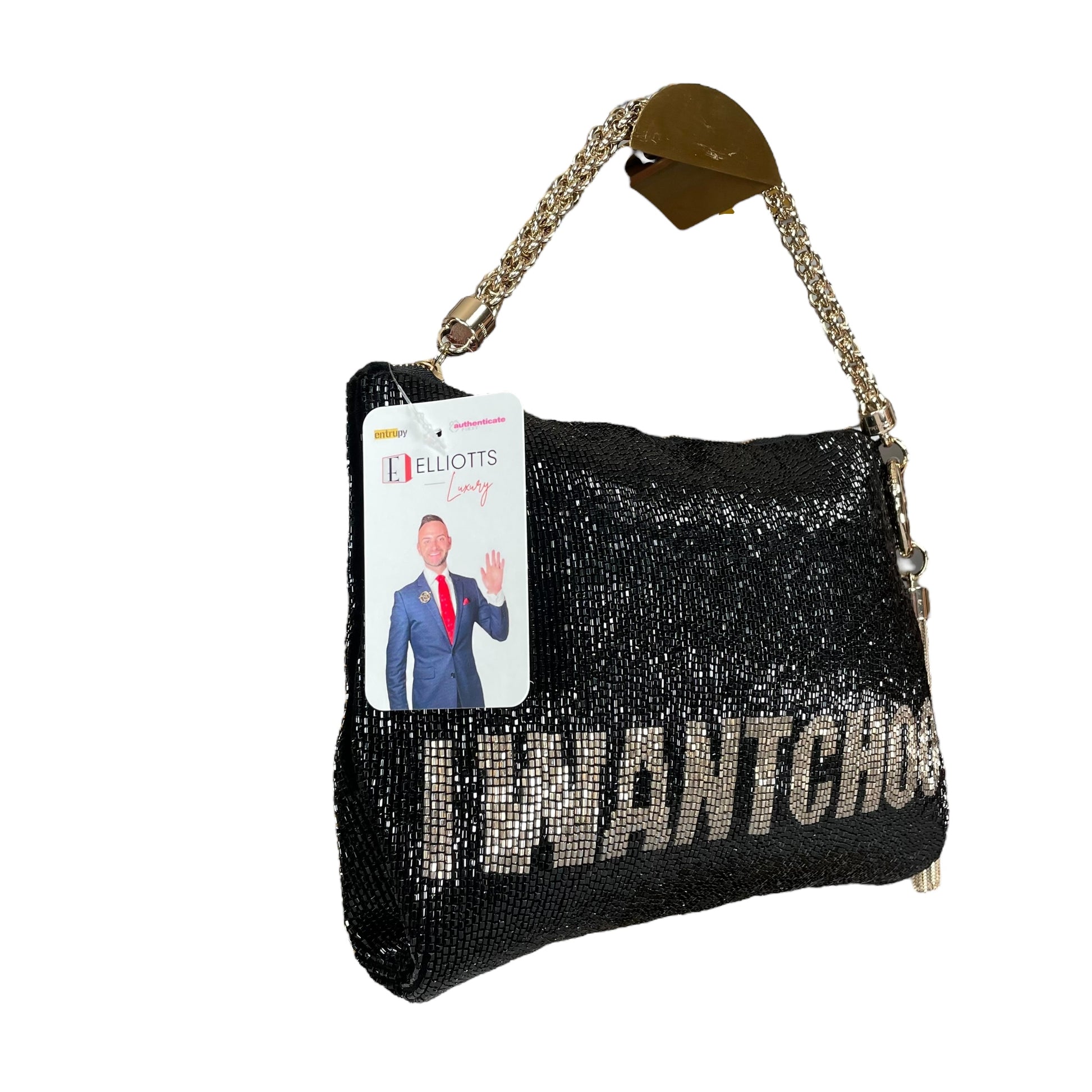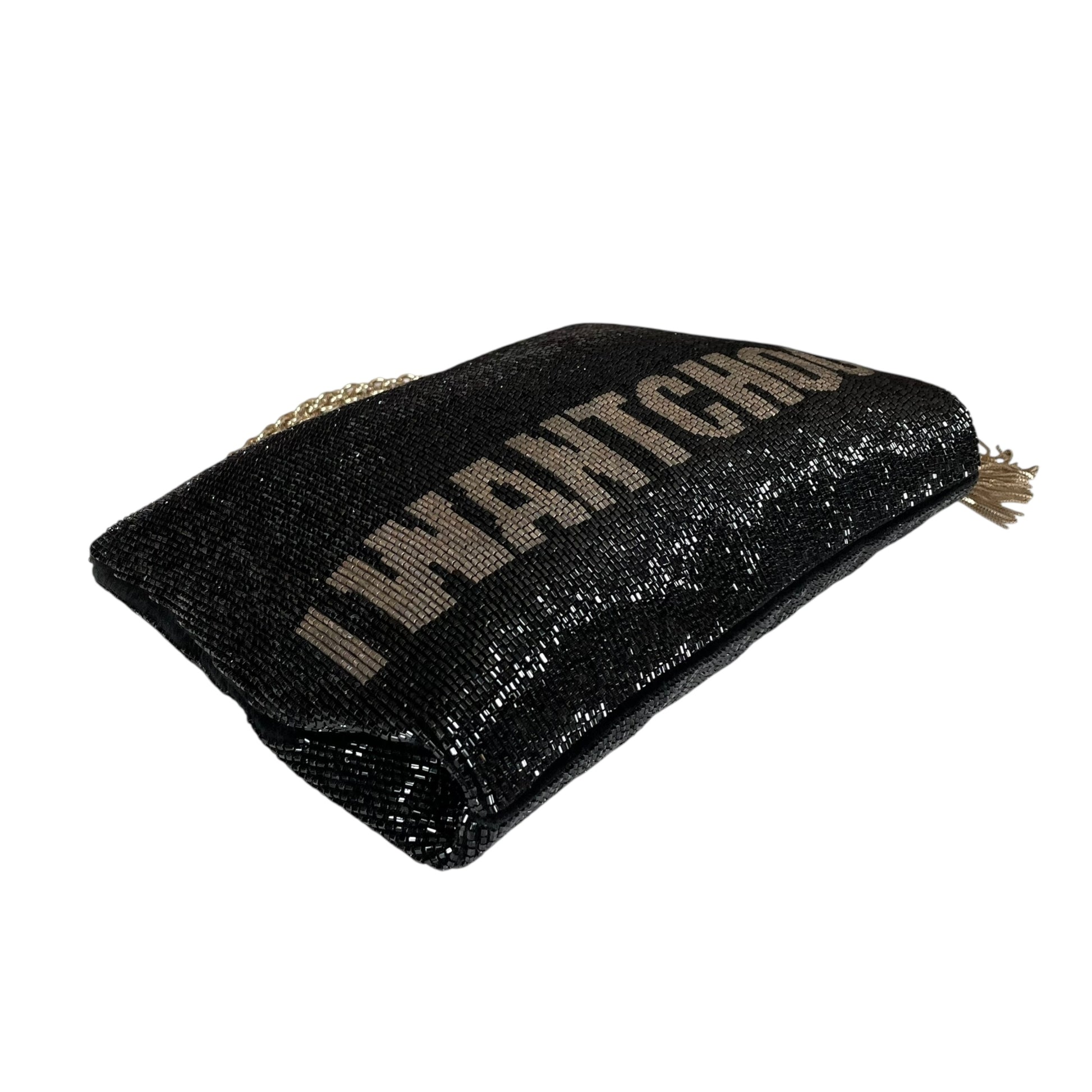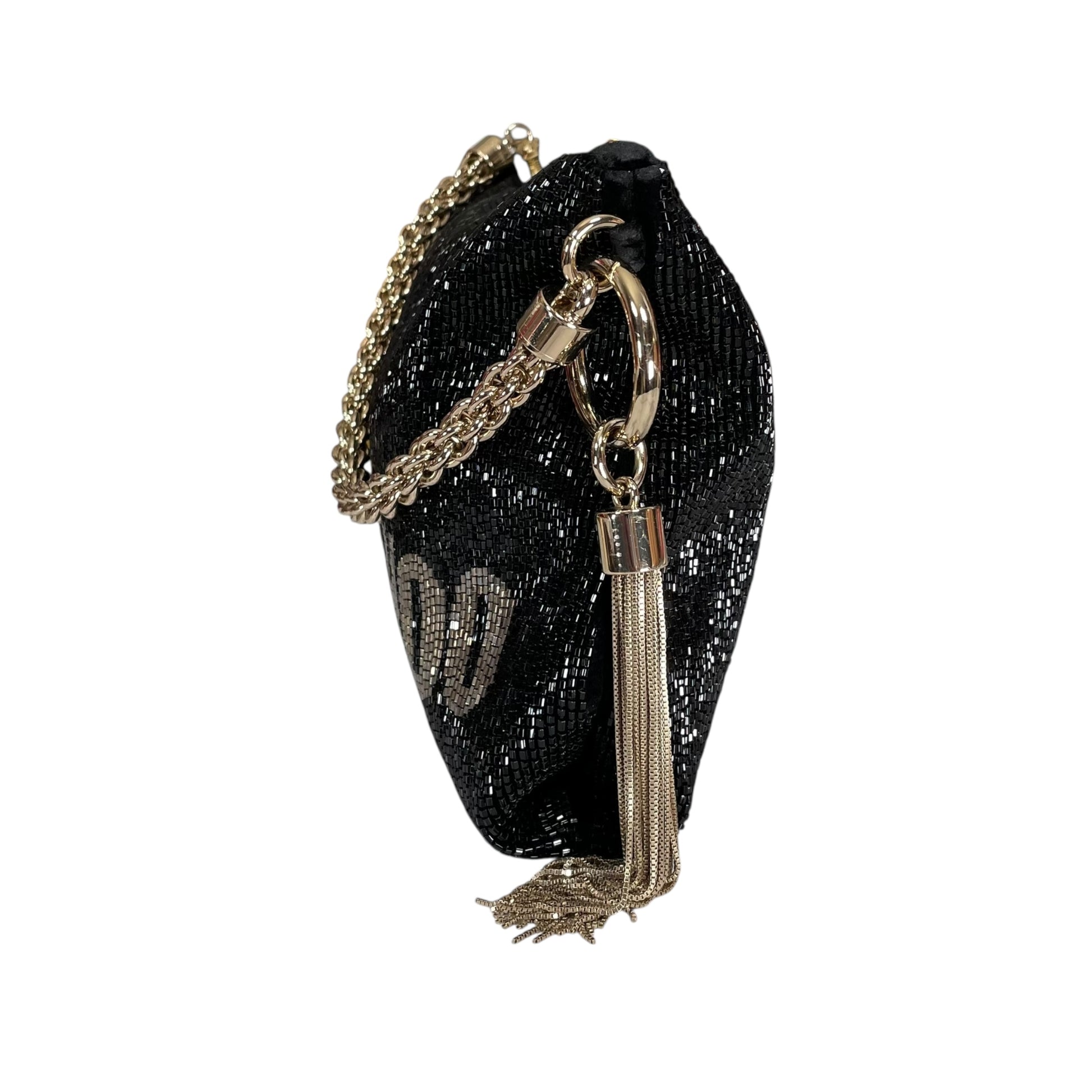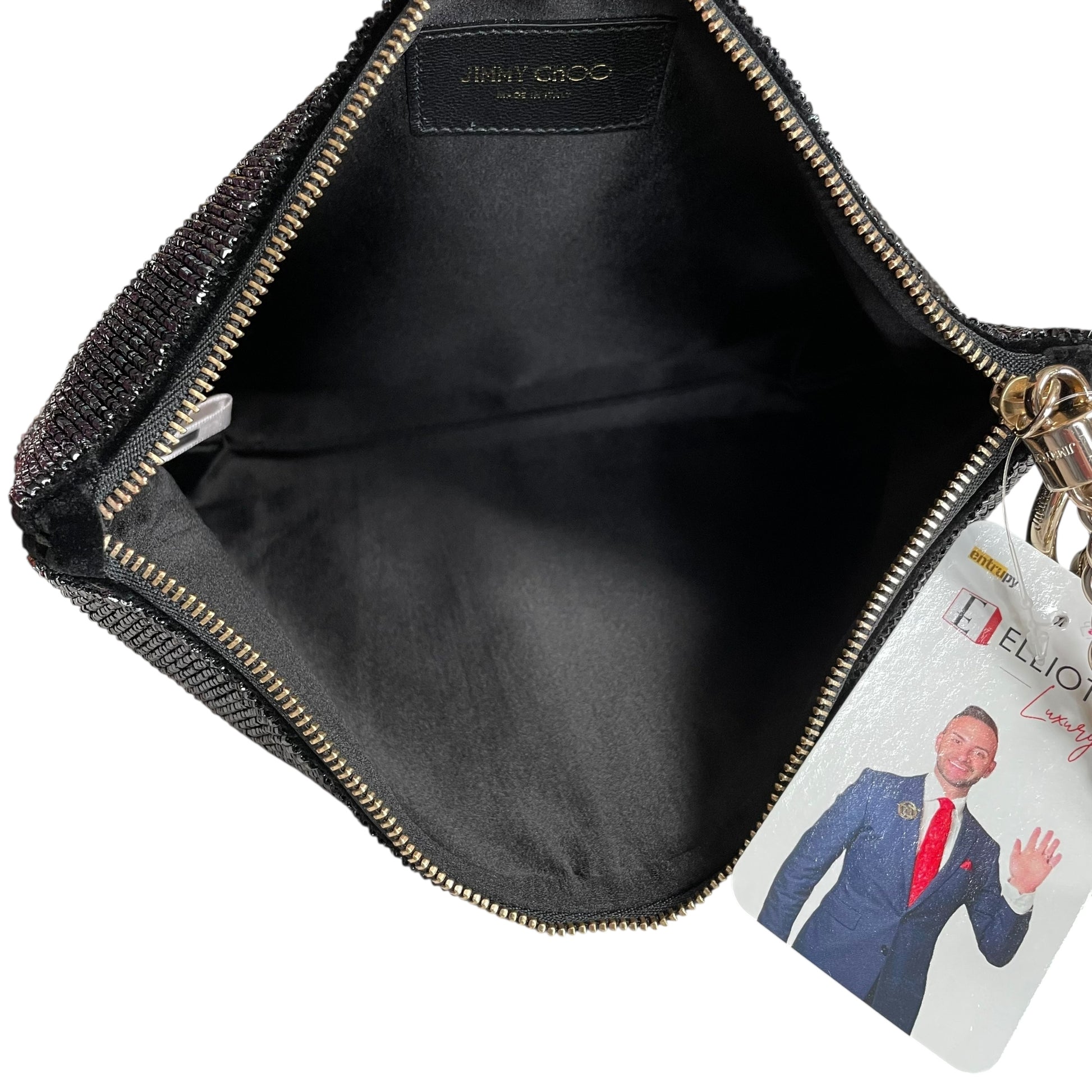Jimmy Choo Callie I WANT CHOO Limited GHW Shoulder Black Beaded Clutch Purse