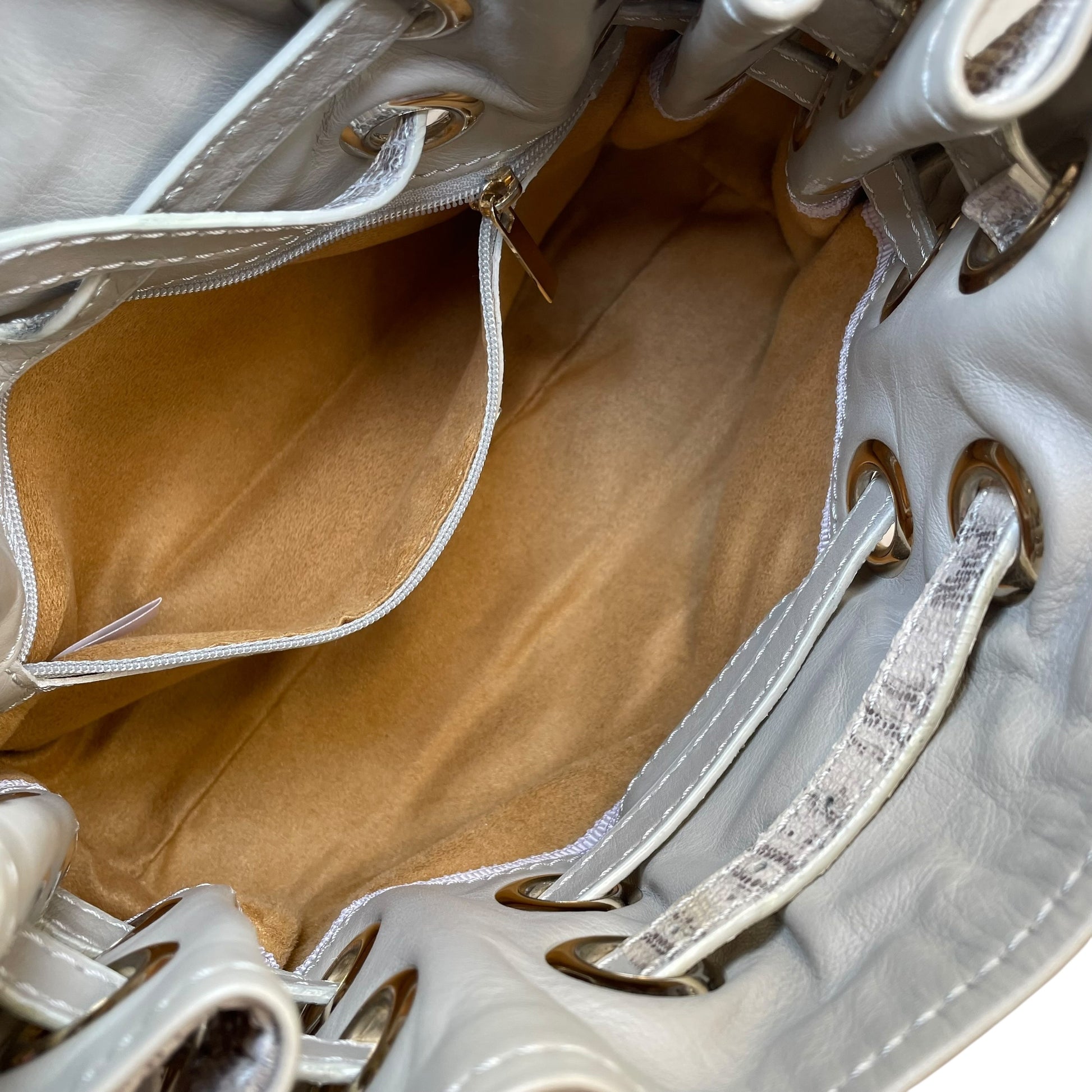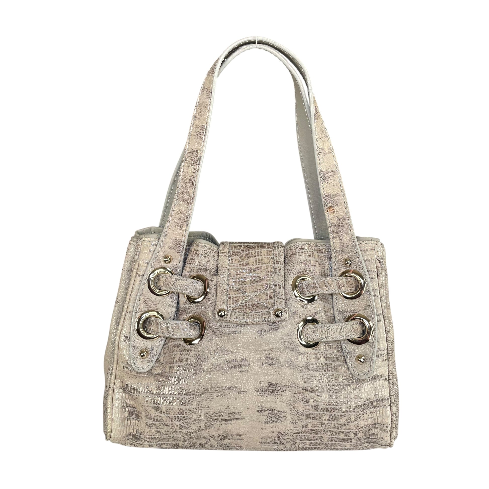 Jimmy Choo Ramona Lizard Embossed Leather Bag Creme / Gold HW Shoulder Purse