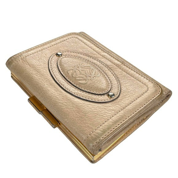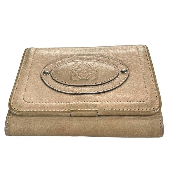 Loewe Leather Creme Compact Tri-Fold Kiss-Lock Wallet card Organizer