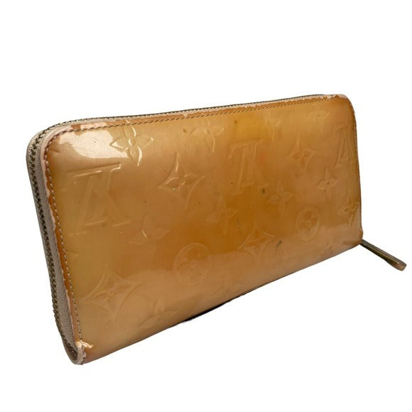 Louis Vuitton Monogram Vernis Harvest Wheat Gold Zip Around Long Wallet
