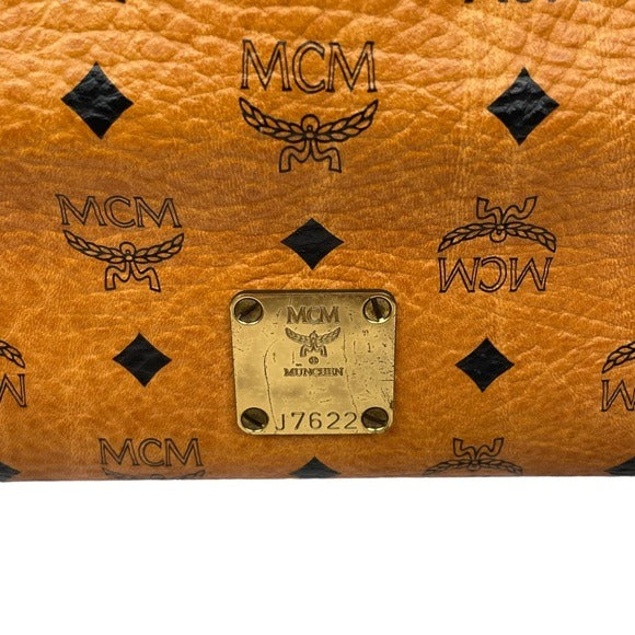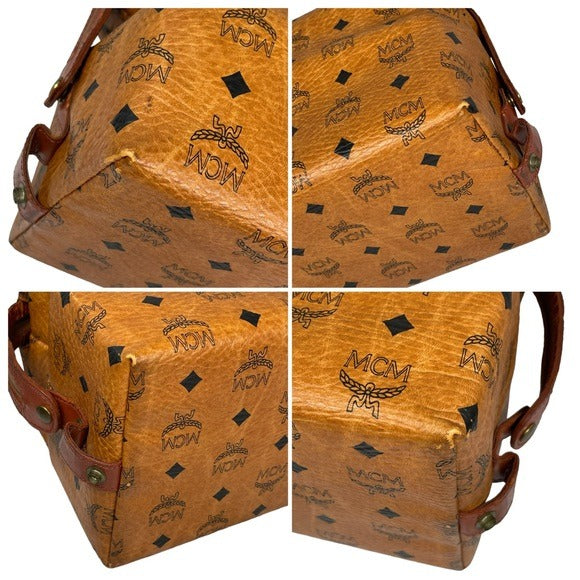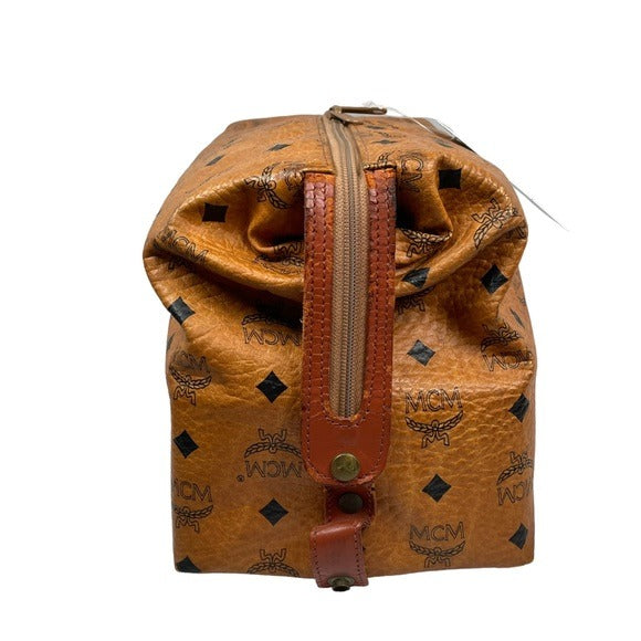 MCM Cognac Viestos Brown Black Zippy Travel Toiletry Cosmetic Bag Large Bucket