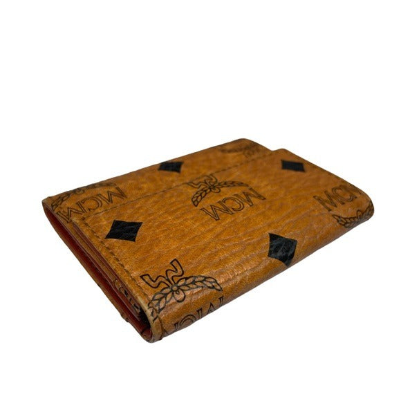 MCM Viestos Canvas Leather Brown Black Card Holder Personal Wallet Organizer