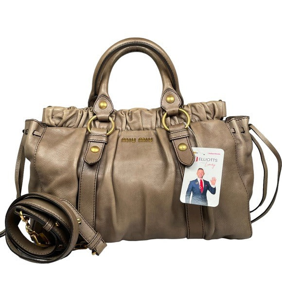 Miu Miu Leather Earthy Brown Brass Hardware Convertible Tote Handbag Purse