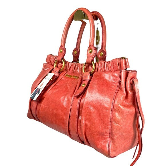 Miu Miu Watermelon Leather Crossbody Two-Way Goldtone Shoulder Purse