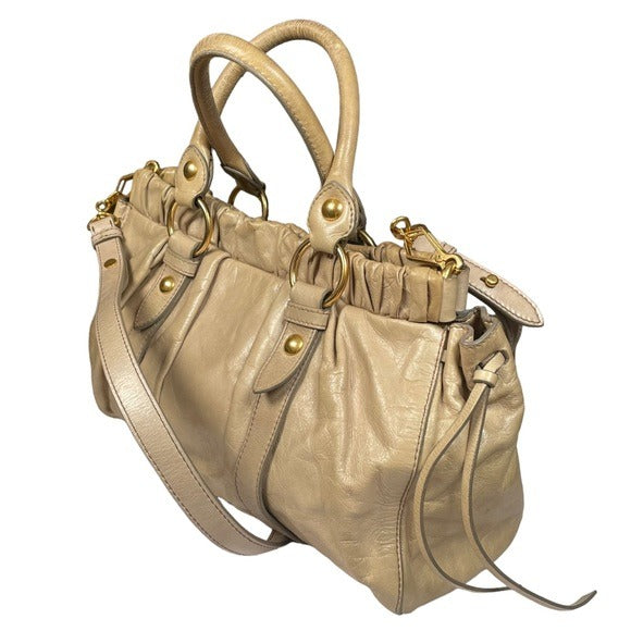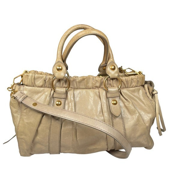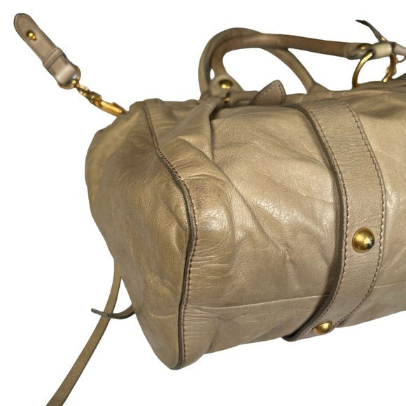 Miu Miu Rippled Gold Leather Shoulder Purse Two-Way Crossbody Zip Bag