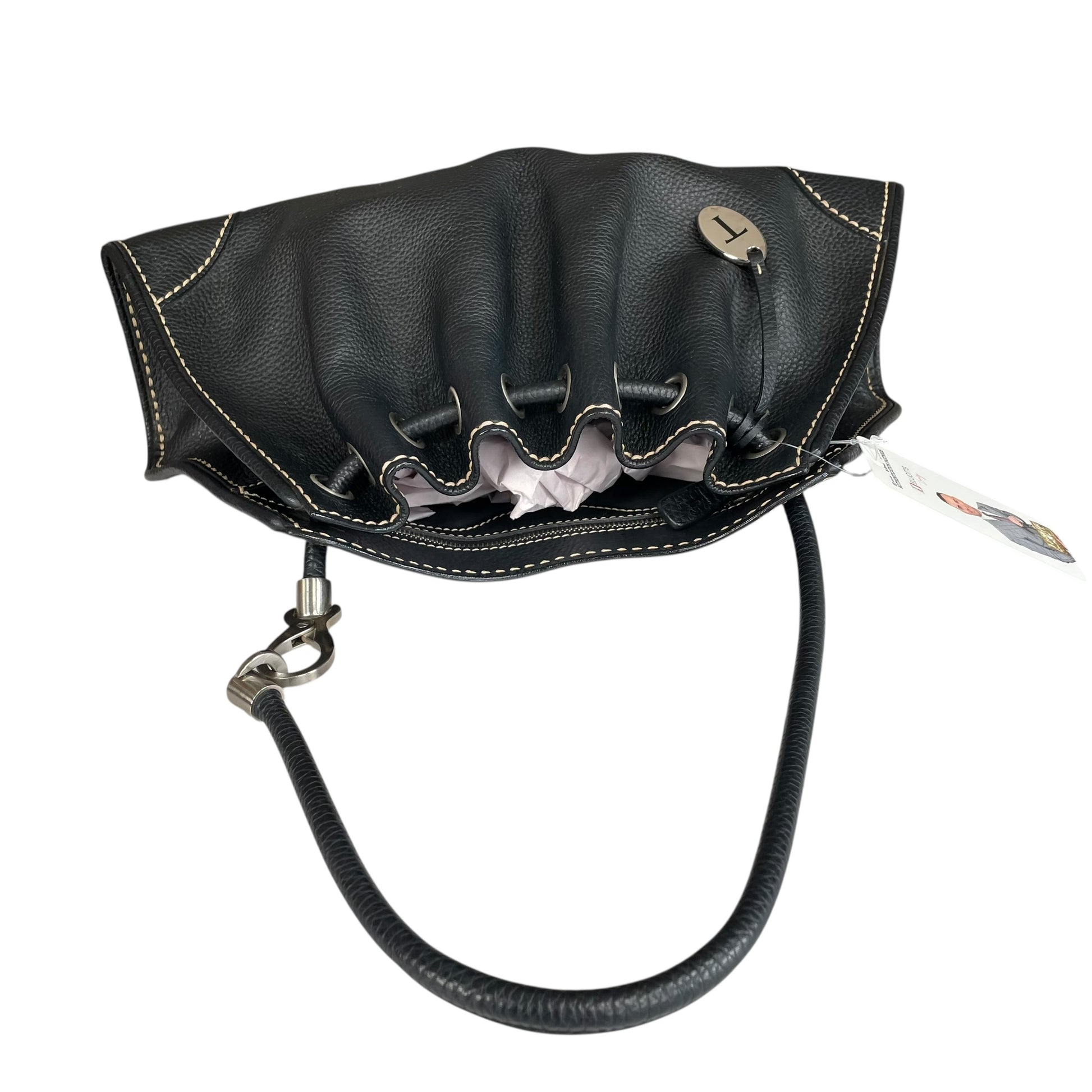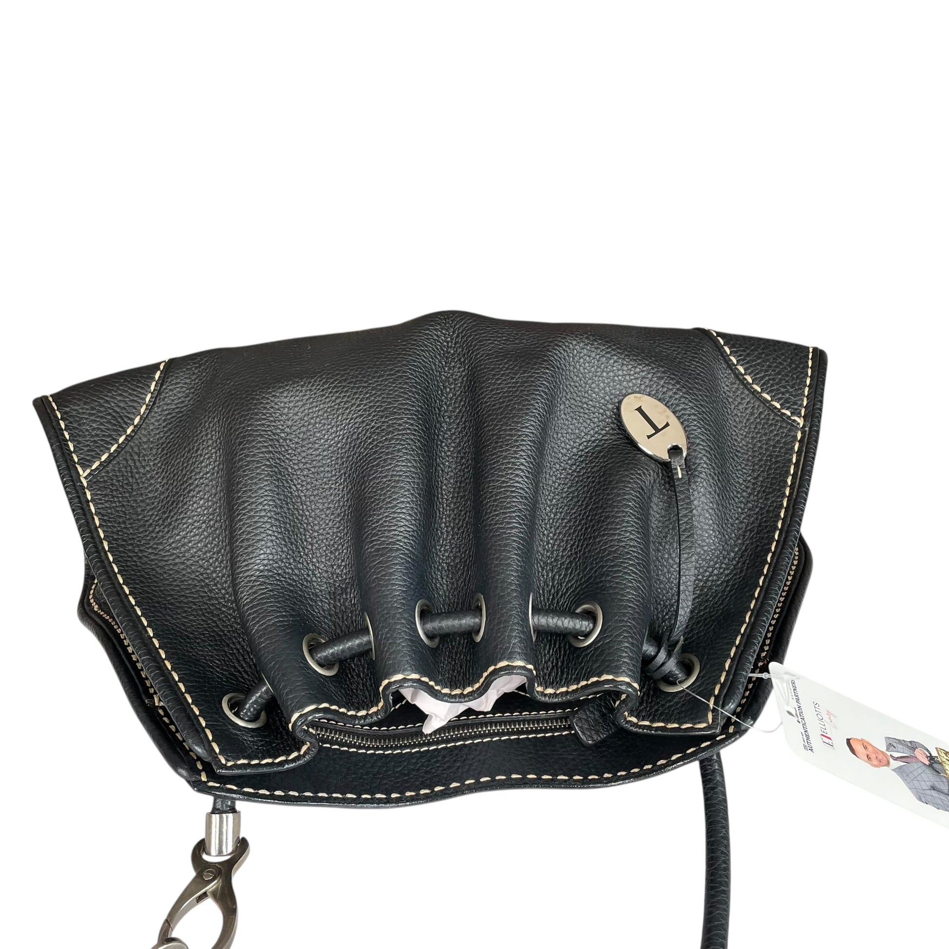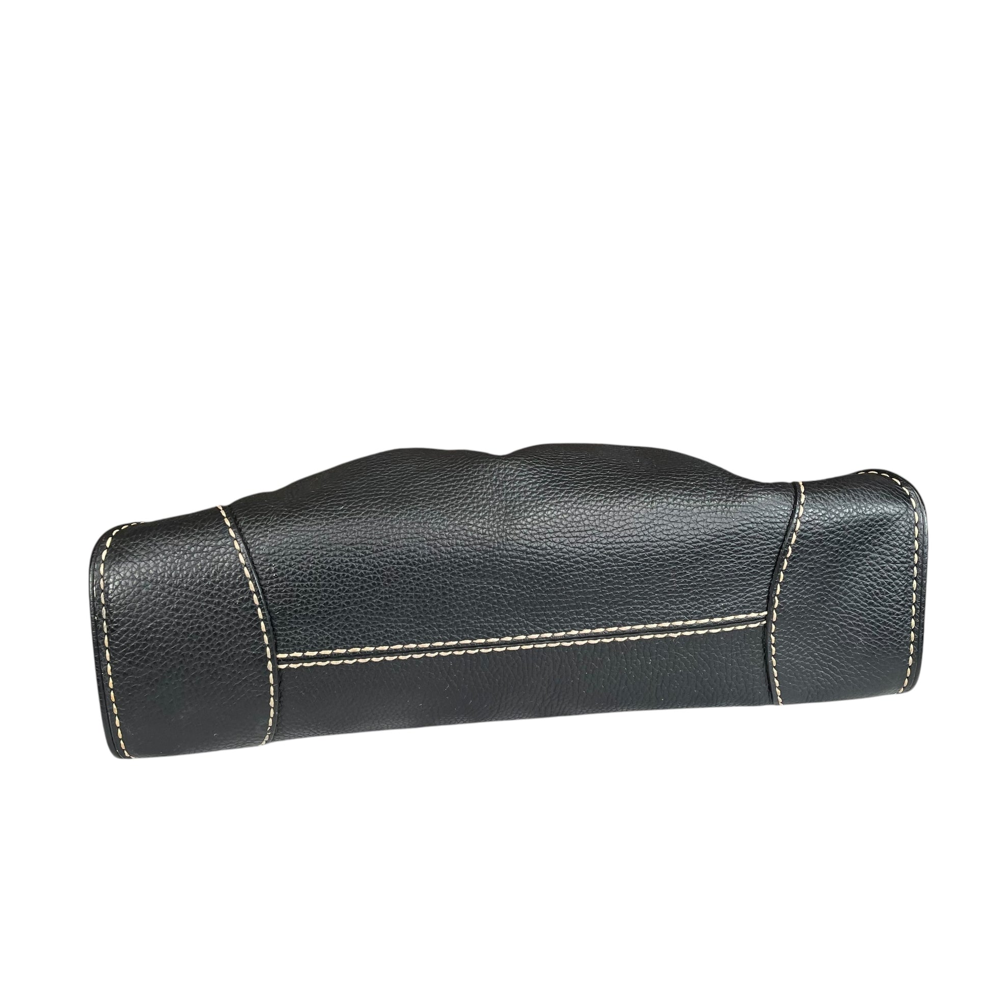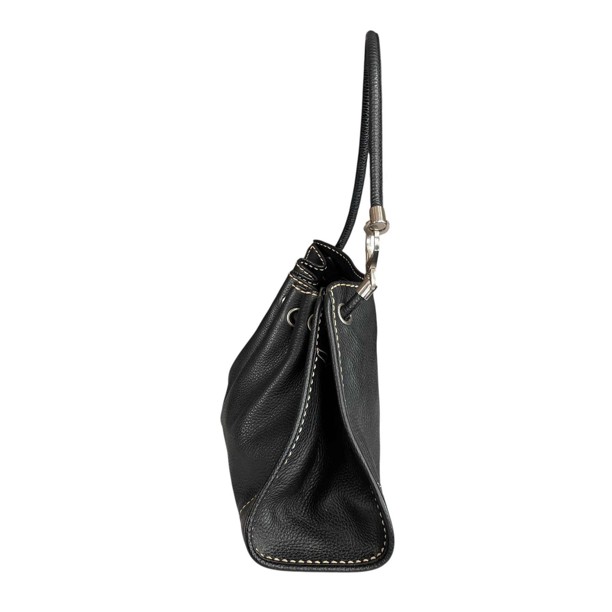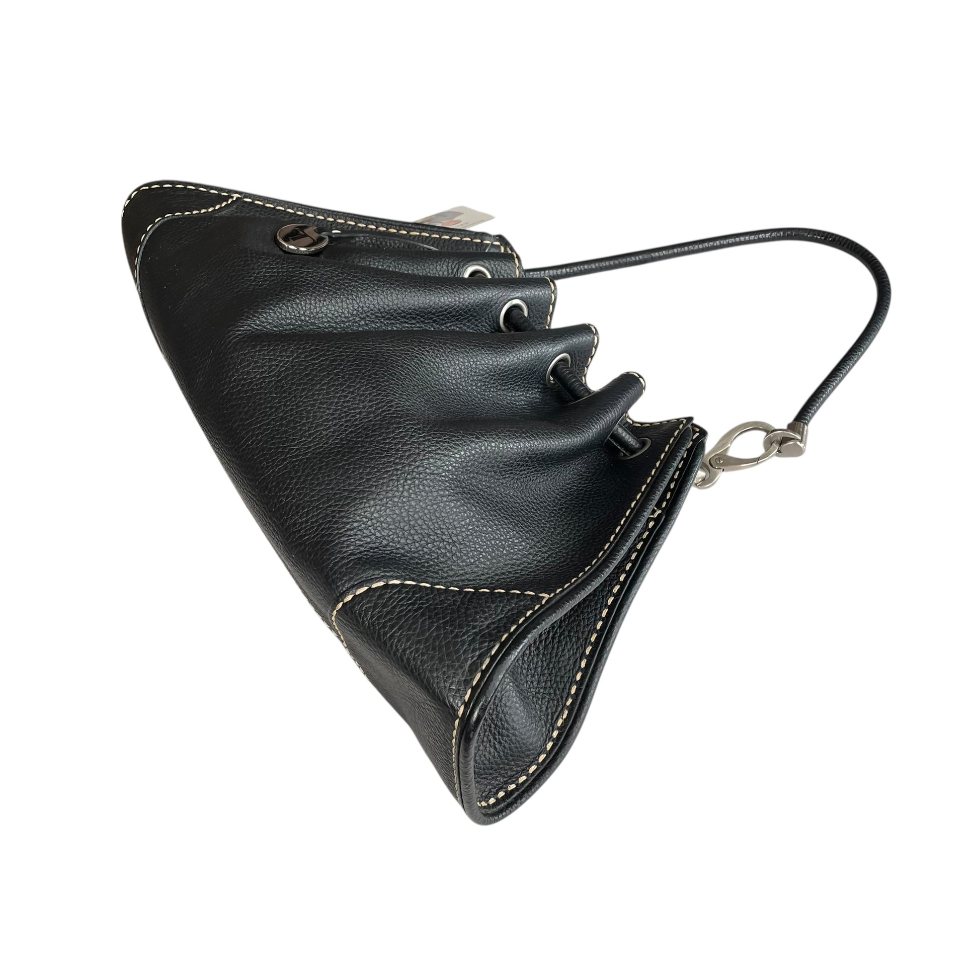 TOD’s Black Equestrian Pebbled Brushed SHW Drawstring Leather Shoulder Purse