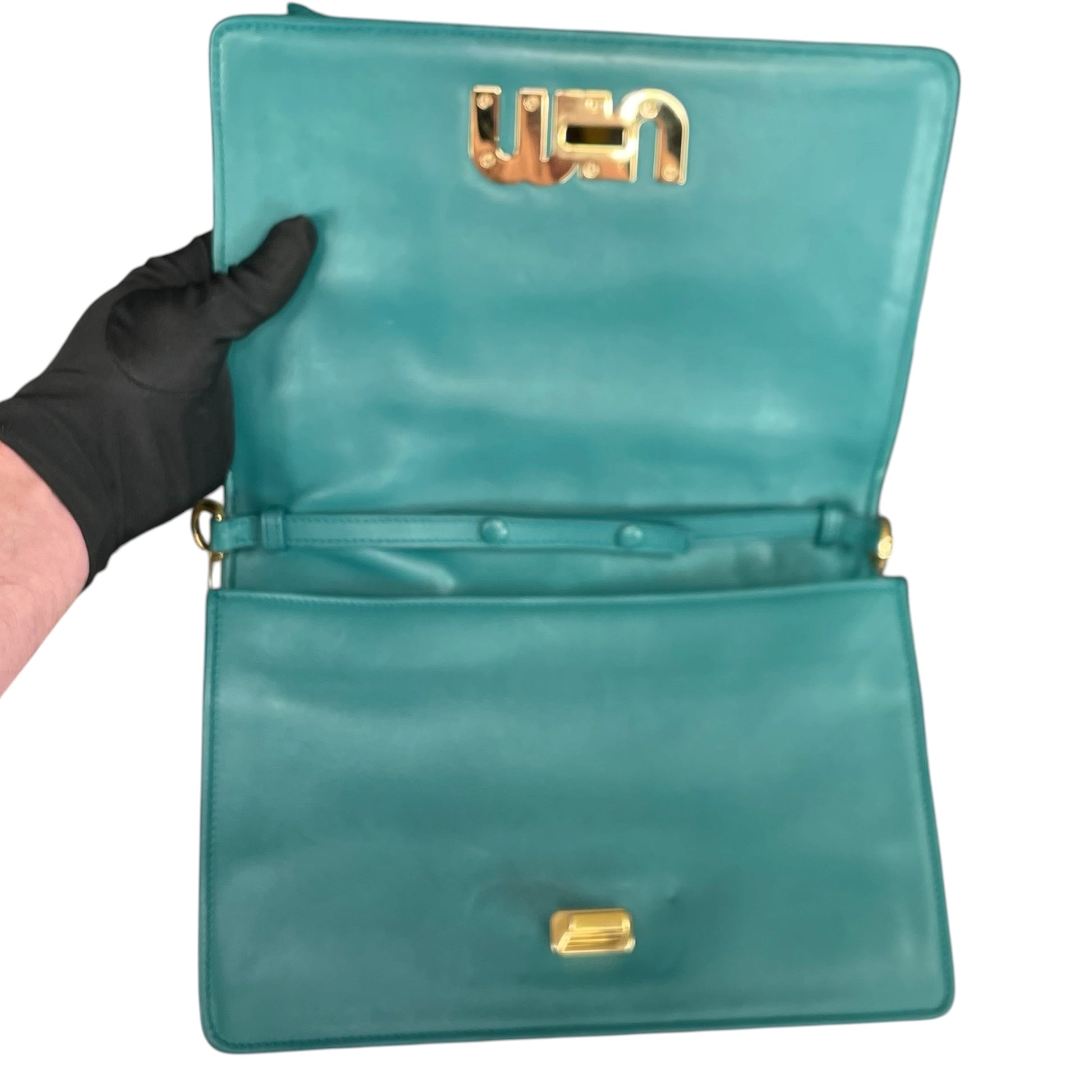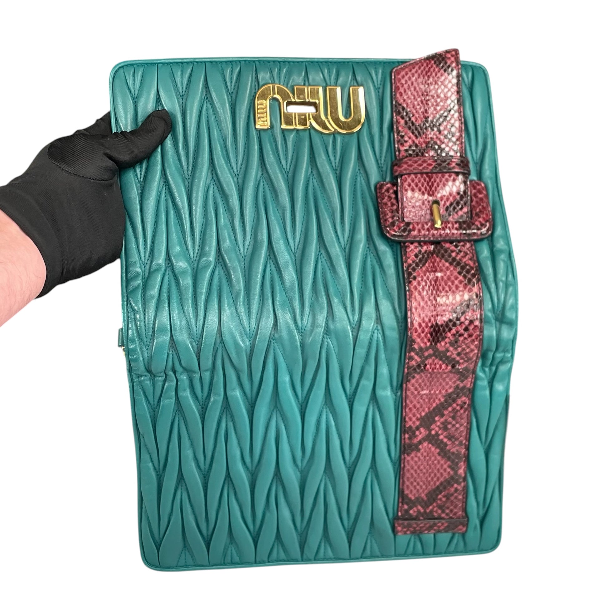 Miu Miu Python Délice Flap Crossbody | Teal Matelassé Leather | Gold Hardware | $1,350
