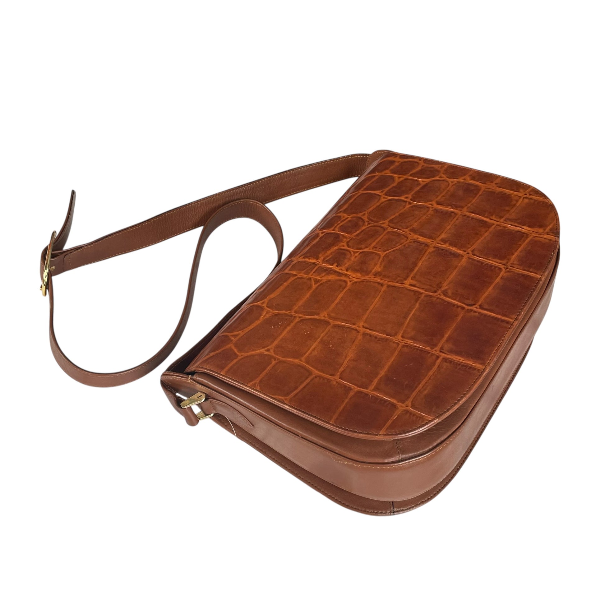 Roberta Di Camerino Croc Embossed Brown Leather GHW Shoulder Flap Purse