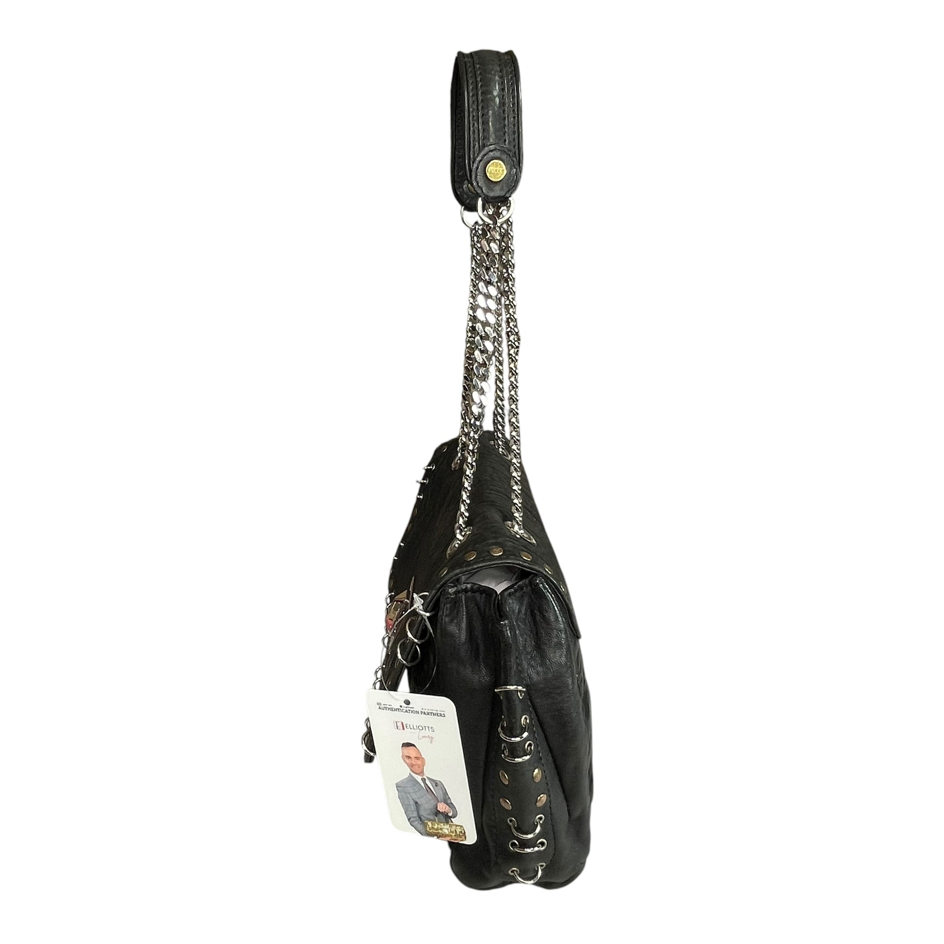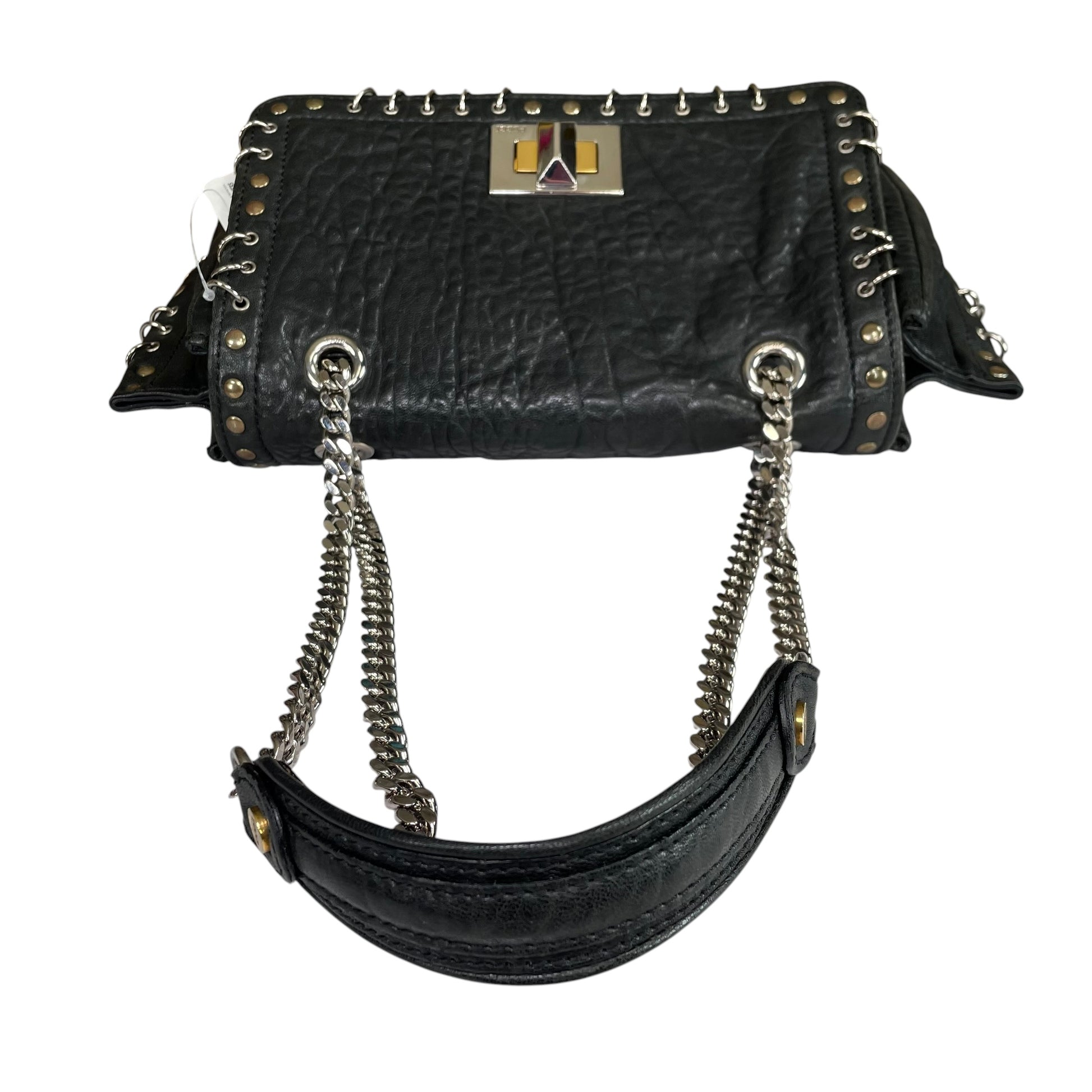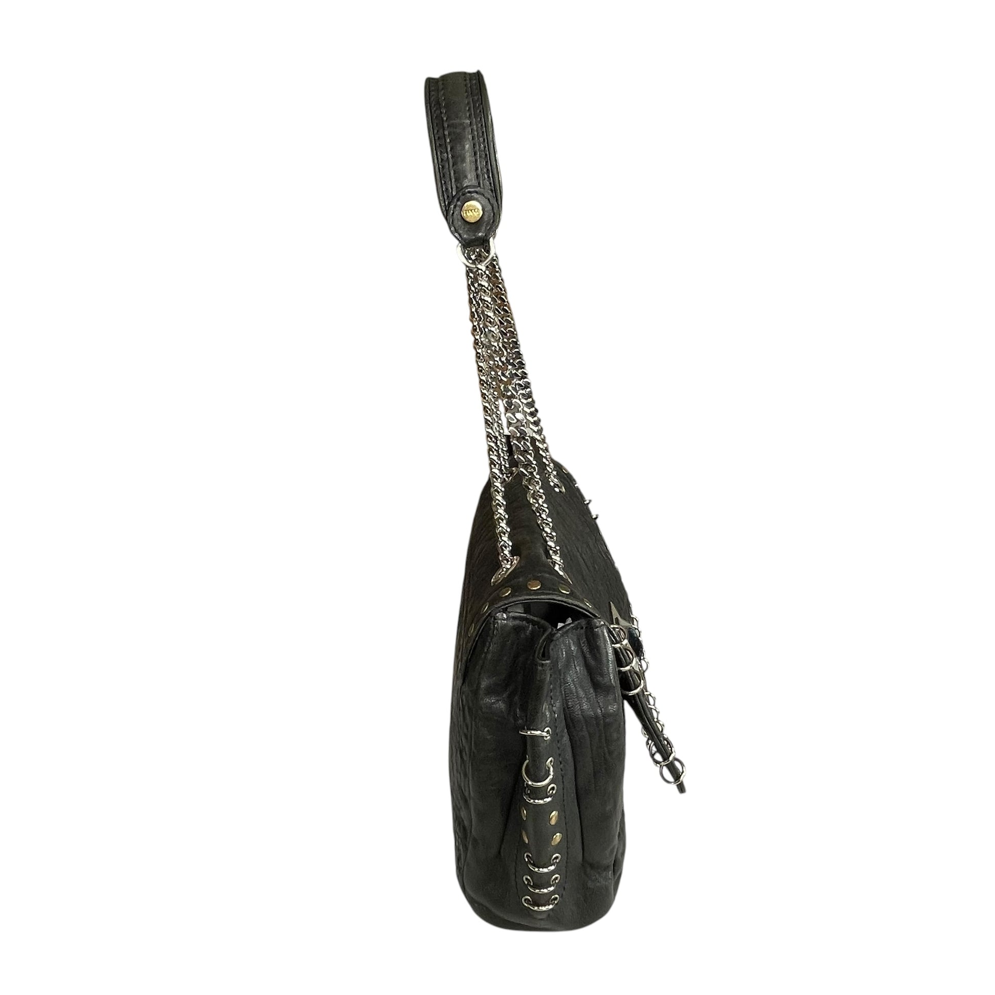 Emilio Pucci Pierced Studded Flap Black Aged Cowhide Silver Gold 2-Way Shoulder Bag