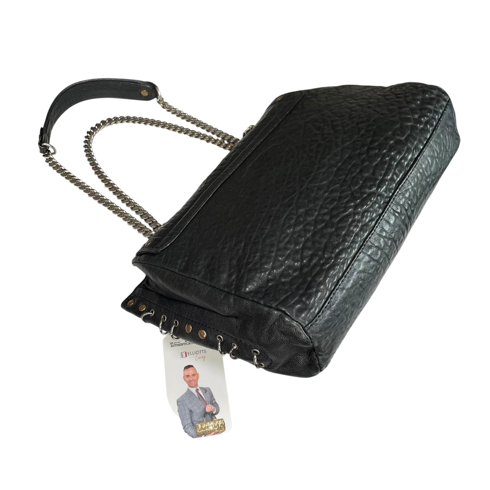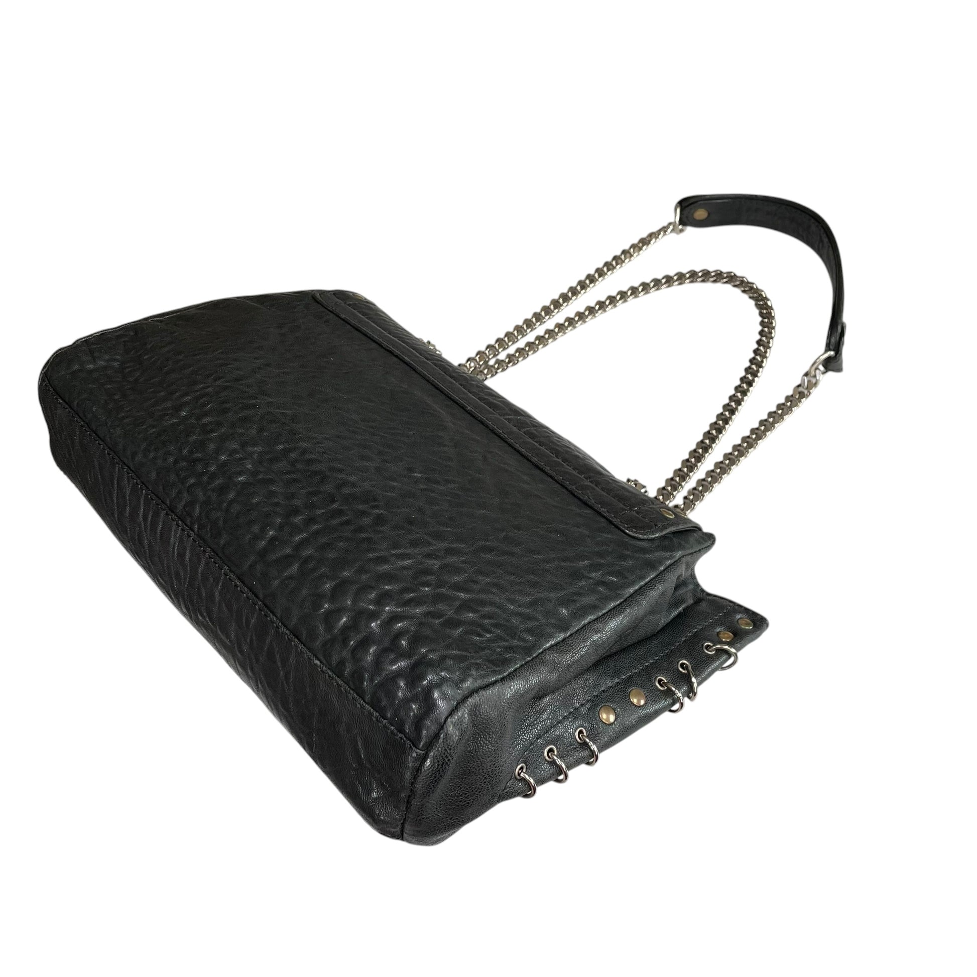 - Strap: Dual chain with leather shoulder pad (9”–16” drop)